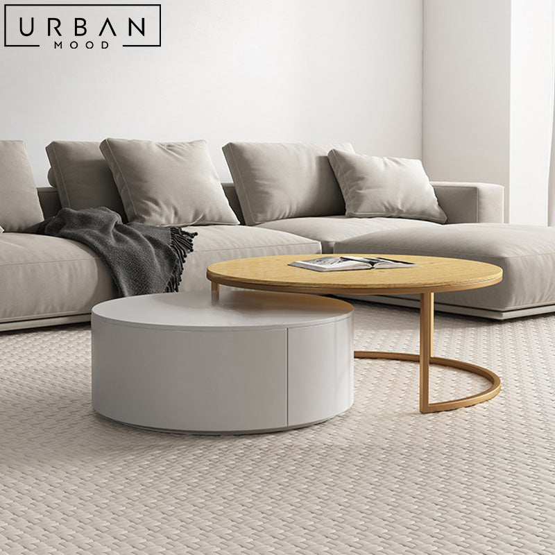 Crafted from highly durable multilayer board in wood laminate, our MADEL nesting coffee tables are designed for compact spaces. Its smaller table comes with a deep drawer for storage of your media accessories, while the large table can be pulled apart for dining and game nights. Choose from a wide range of colours to complement your modern, minimalist, Scandinavian, or Japandi interior. Its simple yet eye-catching design and durable materials ensure longevity and add a touch of modern luxury to any living spaces.