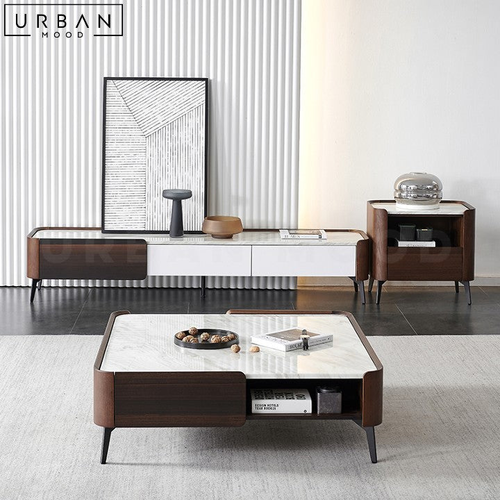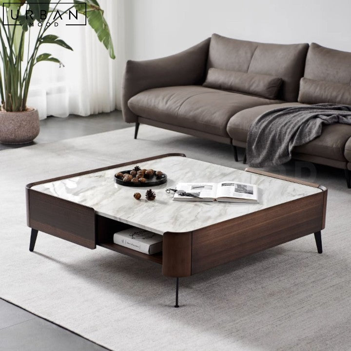 Modern, versatile, and built to last, our MANDA coffee table is the perfect centerpiece for your home. Featuring a sleek sintered stone top, a sturdy walnut veneer frame, and durable carbon steel legs, this table includes an open shelf beneath for storage, keeping your space organized and clutter-free. The combination of materials creates a unique, contemporary design that adds a touch of sophistication to any room. Perfect for coffee, conversation, and relaxation, this center table is a stylish anchor for your modern living space.
