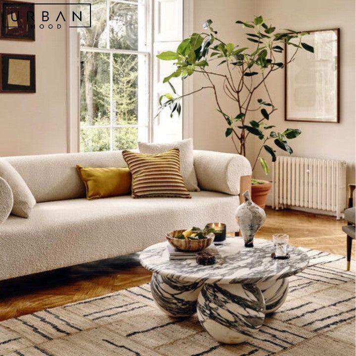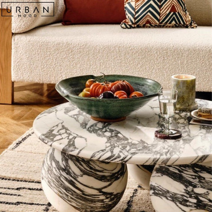 Our MATHESON coffee table is a luxurious addition to any contemporary living space. Crafted from exquisite Arabescato Corchia marble, the tabletop showcases natural veining that adds a touch of elegance and uniqueness. Supported by a sleek stainless steel base, this coffee table offers durability and stability.