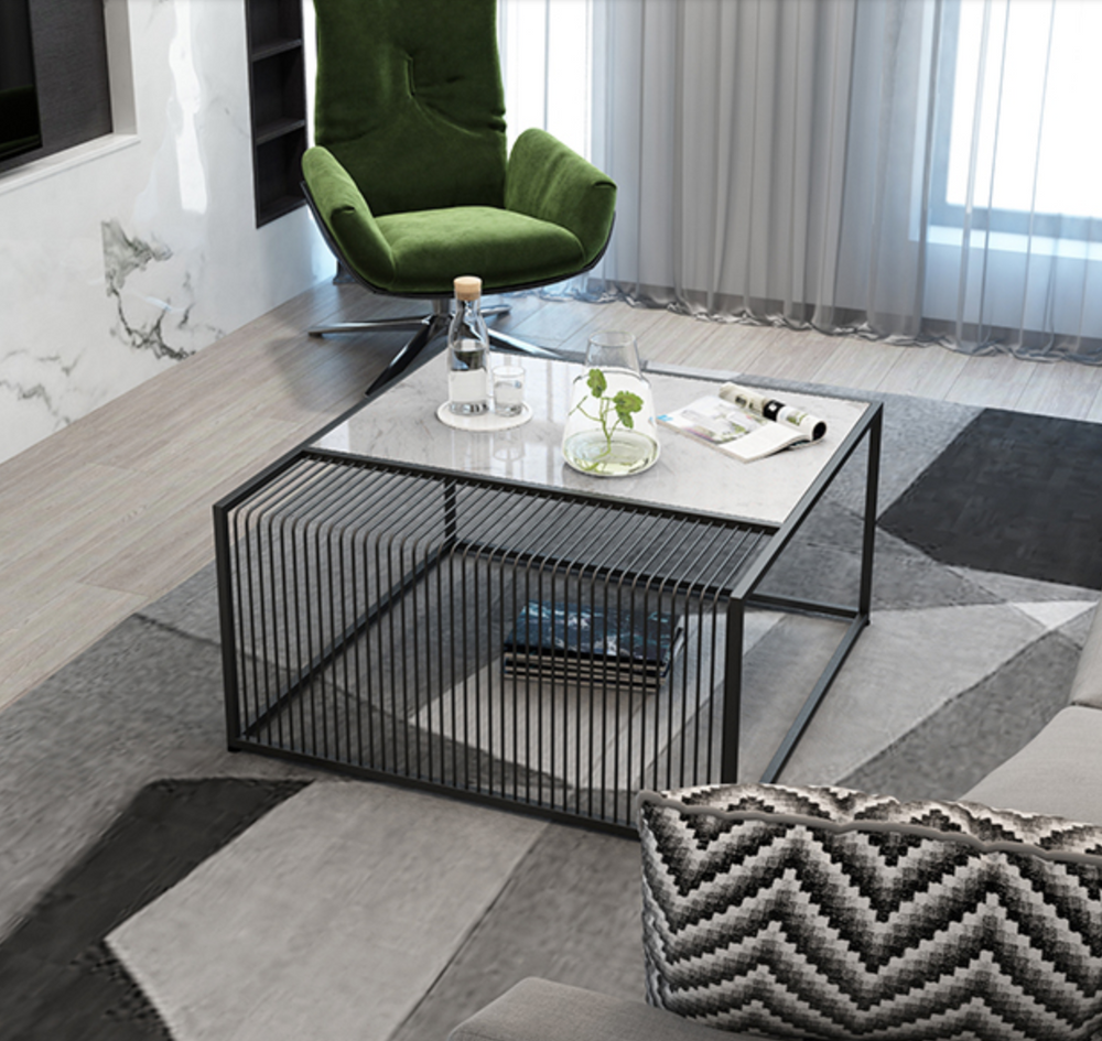 A twist on rustic industrial design. White marble top is combined with a metal frame, for a clean designer look.