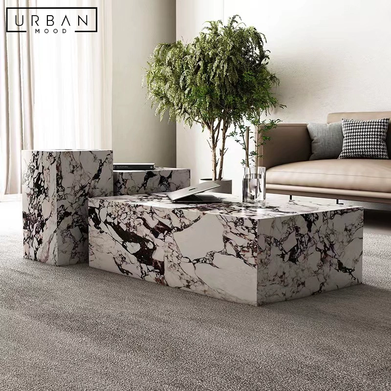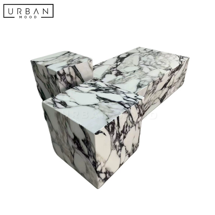 Enveloped in luxurious engineered marble, our MOE coffee table will anchor your living space in timeless class. Crafted from a solid wood structure and wrapped in a high gloss arabescato marble print, this coffee table is designed with functionality in mind while not compromising on style. Whether nestled in a contemporary setting or gracing a classic Victorian interior, this table will transform your home into a showroom, where modern aesthetics meet refined luxury. Make a bold statement and complete the look with our MOONSTONE TV console and ASHER floor rug.