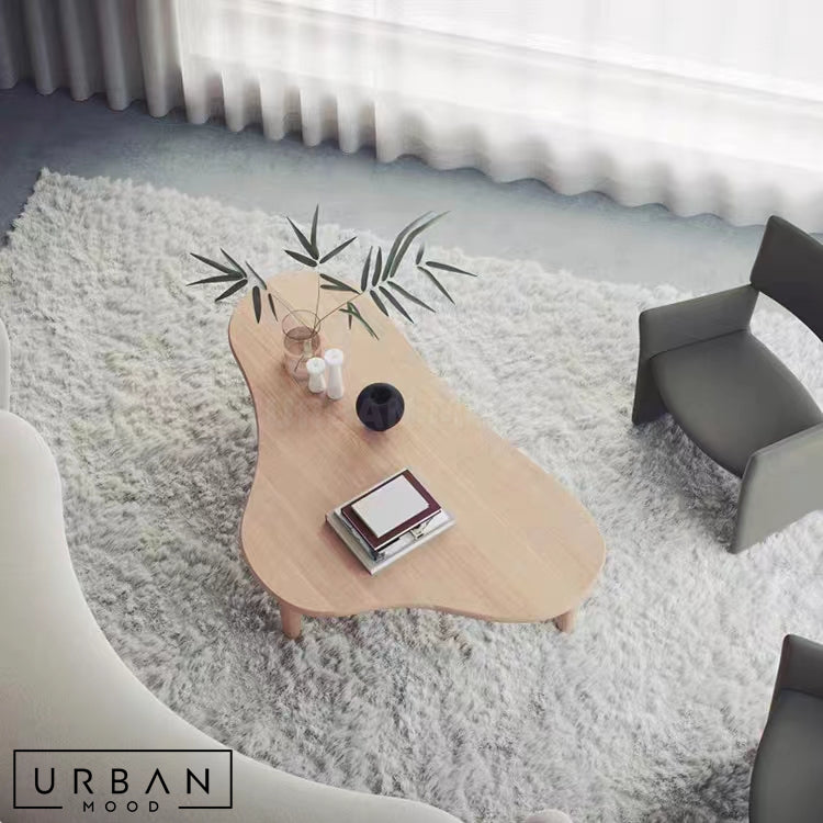 Add an artistic flair to your living room or office lounge with our MONDY coffee table. This unique table showcases an irregular silhouette that is both contemporary and sleek. Crafted entirely from solid pine wood, this low-sitting coffee table lends a natural and organic charm to any modern, rustic, Scandinavian, or Japanese-inspired settings.