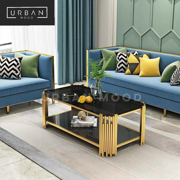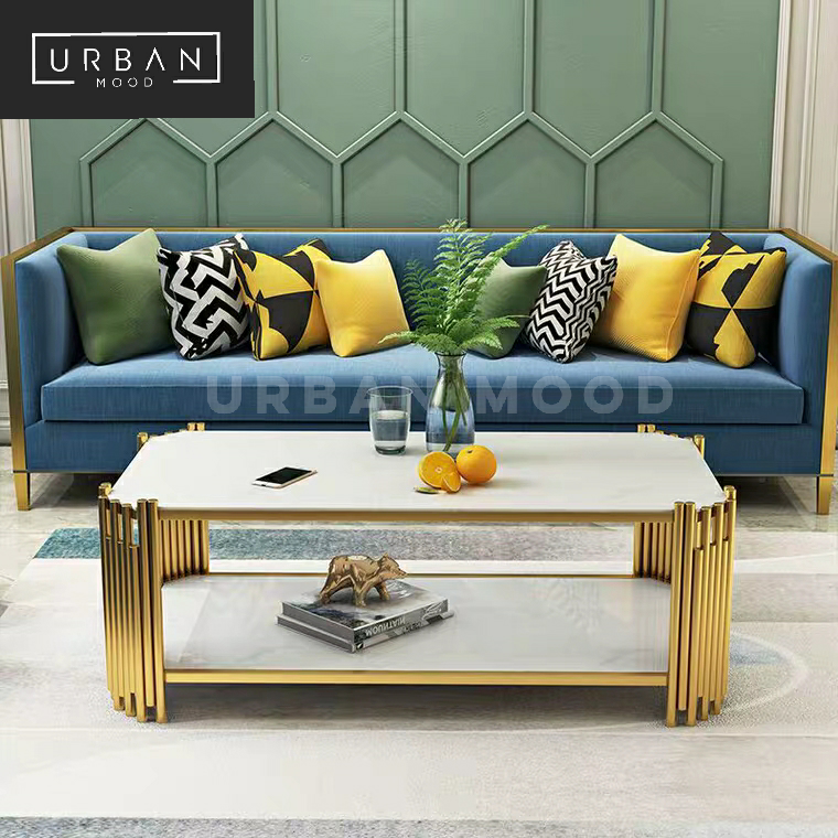 Grand and luxurious while remaining practical, the Morocco coffee table showcases a full length engineered marble top in your choice of black or white, and two drawers for your media accessories. Crafted with an attention-grabbing satin gold metal frame, this design exudes elegance and serves as a focal piece in any entertainment set up. Most ideal for modern, victorian or classic settings.