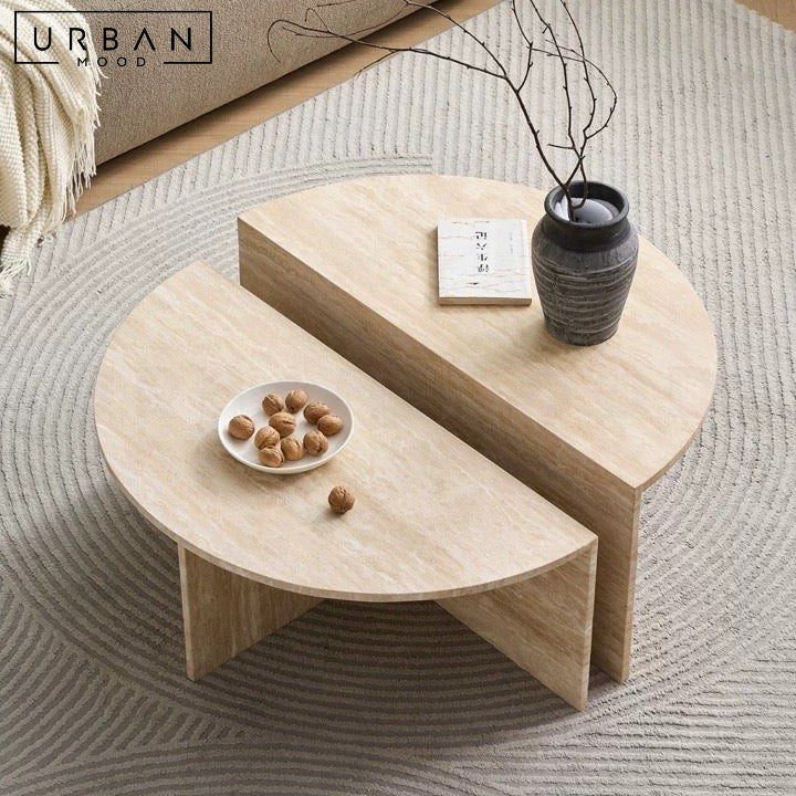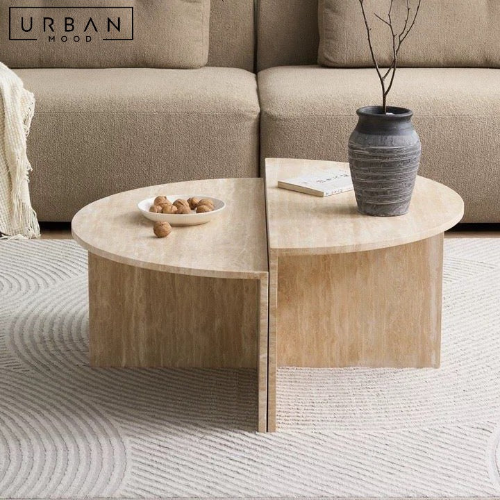 Embrace organic elegance with our MOYA center table. Perfect for Japandi, Hygge, or Muji interiors, this table comprises of two interlocking half-moon tables. Versatile design allows separation for flexible use.