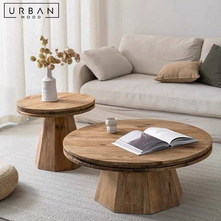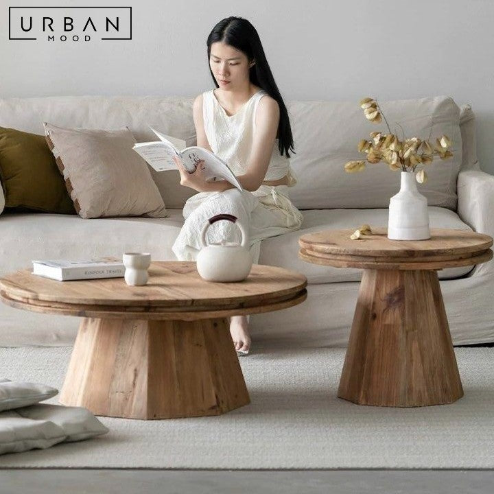 Our NEURO coffee table pairs distressed charm with natural elegance. This round-shaped coffee table is crafted from ash wood and features a distressed finish, adding a vintage vibe to any room. Its premium wood construction ensures longevity and style. Complement with our matching side table for a harmonious look, creating a cozy conversation area. Ideal for farmhouse, rustic, or vintage-inspired interiors, this unique coffee table brings warmth and character to your home. Pair it with comfortable seating and decorative accents to complete the perfect living room setup, perfect for relaxing and entertaining.