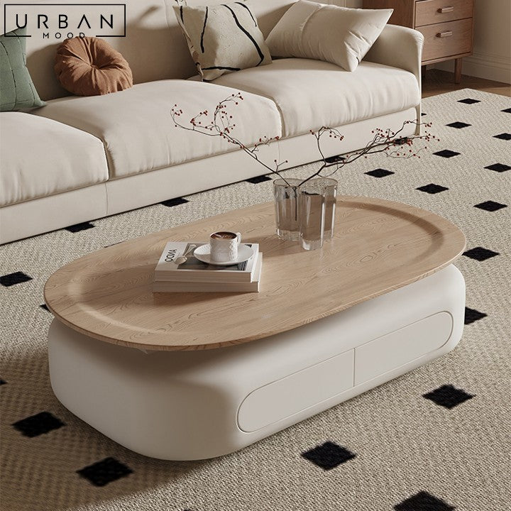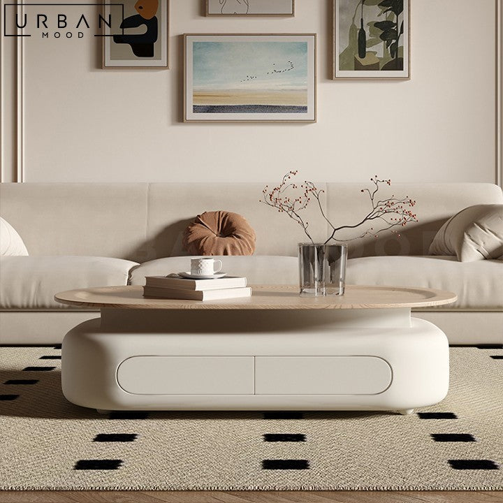 Bring warmth and functionality to your living space with our Japandi-style PARA coffee table, featuring a warm oak top and milky white base. The rectangular design with rounded corners creates a child-friendly and safe environment, while the two drawers provide ample storage for essentials. The contrasting wood and matte finishes add a touch of sophistication and elegance, perfect for modern interiors. The rounded corners soften the overall look, making it a beautiful and practical addition to your Japandi or Hygge home.