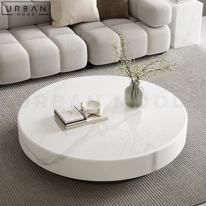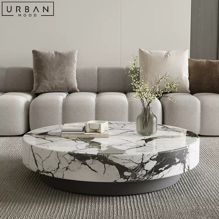 A luxurious centerpiece that will anchor any modern living space in style, our PARVE coffee table is crafted from luxurious engineered marble and steel. With its sturdy construction, it provides both style and functionality for your living area. Its rounded silhouette ensures safety for guests and children, while its glossy marble finish reflects the refined taste of any contemporary or classic home.