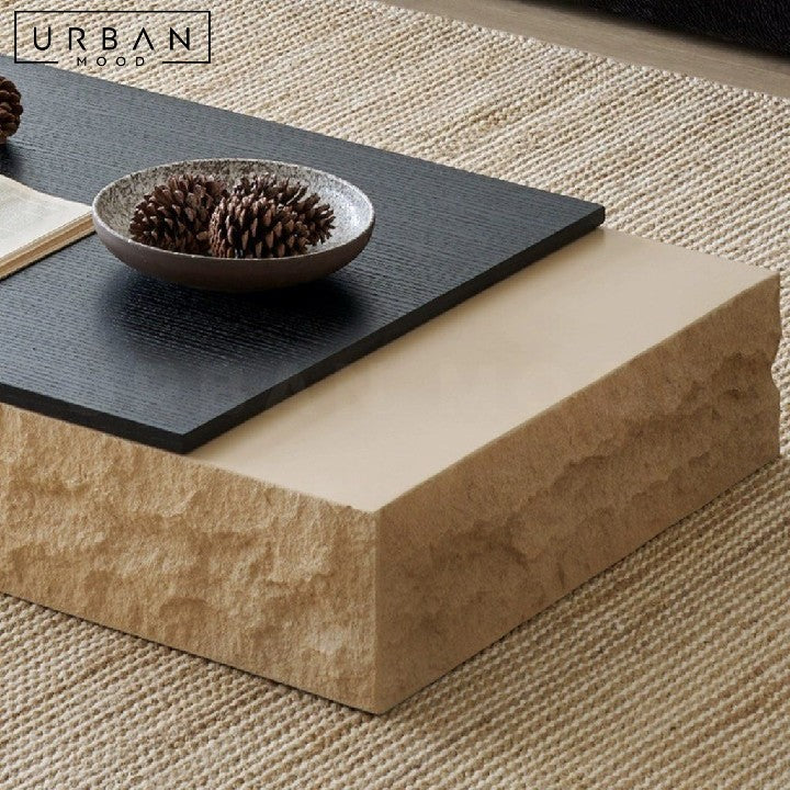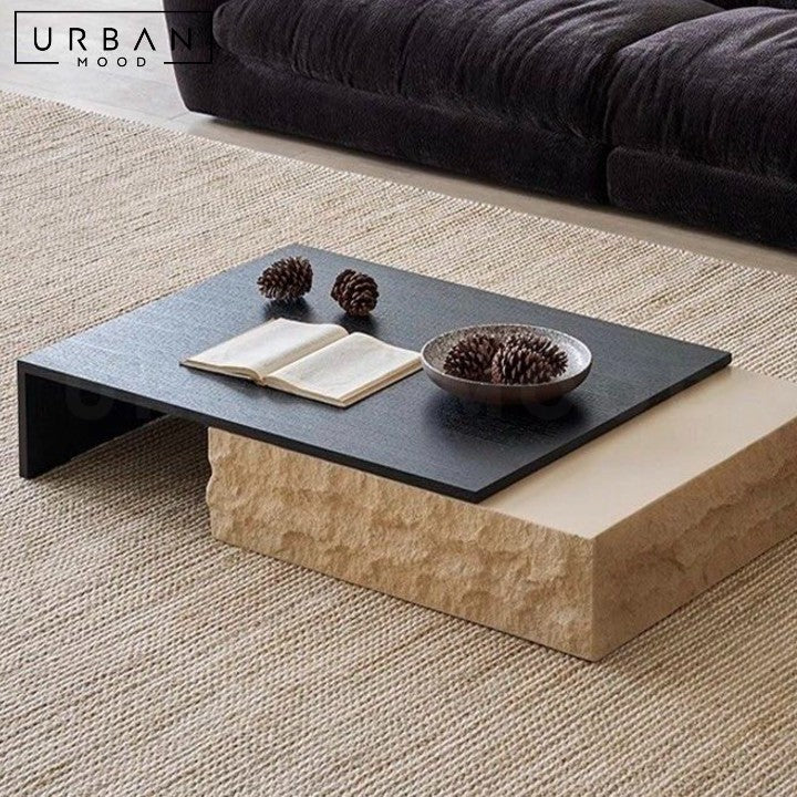 Add a touch of organic elegance to your living room with our PERRIER travertine coffee table, featuring a stunning beige travertine base and a beautifully crafted oak wood table top. The clever extendable design allows you to pull out the table top for big occasions, and retract it when not in use, perfect for small spaces. This unique piece is a perfect fit for wabi-sabi interiors, celebrating the beauty of natural imperfections and textures. A timeless and functional addition to your home.