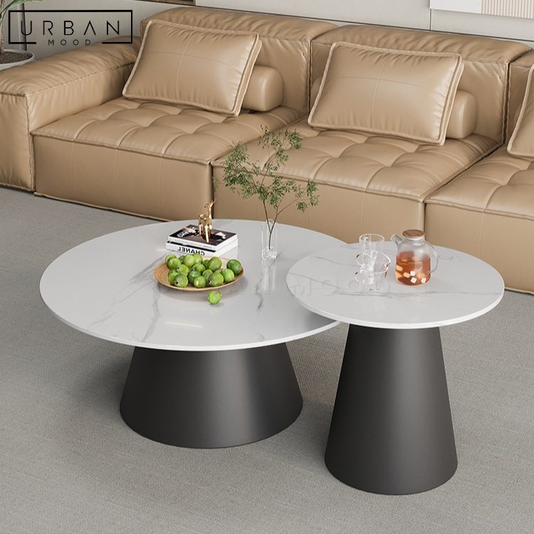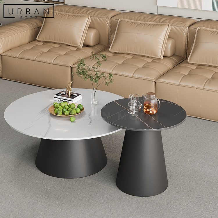 Set your home ambiance with our QUAINT circular coffee table accompanied by a side table, each a distinct and eye-catching piece. This clean-lined design is crafted from sintered stone, engineered to endure the bustling energy of children while ensuring style is not compromised. Group them harmoniously for a curated look, or pull them apart to use as a planter, end table, or bedside table. Whether nestled in a snug nook or as a focal point in your living room or office lounge, these tables will accentuate any modern, minimalist or contemporary space.