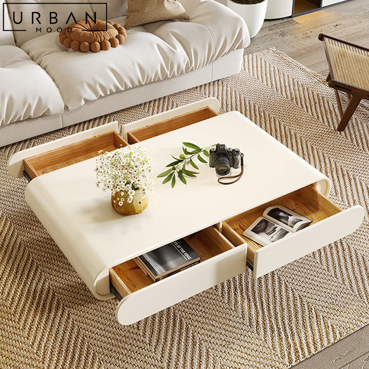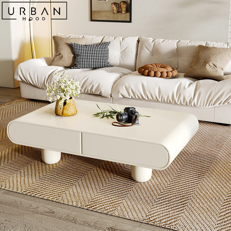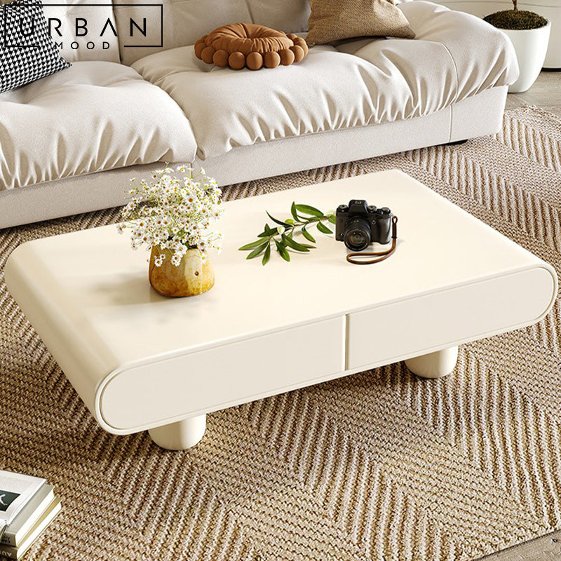 Crafted from highly durable fiberboard, our RICE coffee table is a an adorable addition to any Japandi or Hygge-inspired homes, featuring a wide table surface and rounded edges. Simple yet elegant, this center table showcases four deep and spacious drawers for storage of your media accessories. Create a soothing ambience with the simplicity of this coffee table which goes well with any of our TV cabinets in our Japandi series.