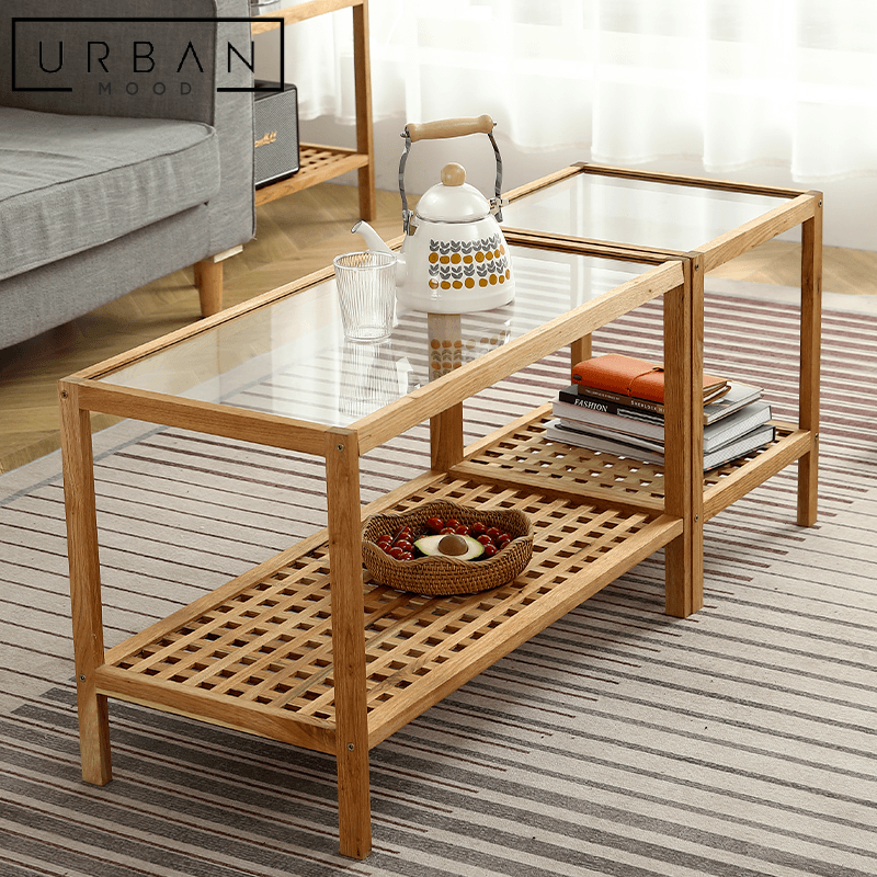 The perfect blend of Japanese and Scandinavian design, our SCOLLE coffee and side tables are crafted from high-quality pine wood. With a shelf below, this coffee table provides ample storage space for your favorite books, magazines, or decorative items. The Japandi style brings a touch of natural beauty to your home decor, creating a calming and relaxing atmosphere.