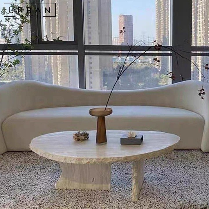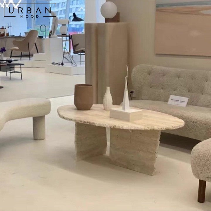 Introducing the SHANNON Modern Travertine Coffee Table, a striking centerpiece for any contemporary living room. Crafted from luxurious natural travertine, this coffee table effortlessly combines elegance and durability with a sleek, minimalist design. Its clean lines and organic stone texture make it a standout piece that enhances any modern interior.