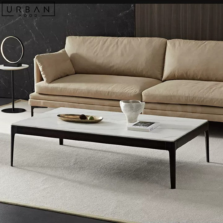 Featuring a durable sintered stone top in your choice of white or black, our SHIZUKU coffee table boasts a slim black frame that adds a touch of sophistication. This contemporary coffee table is ideal for minimalist, industrial, or urban-chic interiors. The sintered stone top is resistant to scratches and stains, making it perfect for everyday use. Add a touch of modern elegance to your home with this versatile and low-maintenance coffee table, perfect for relaxing and socializing.