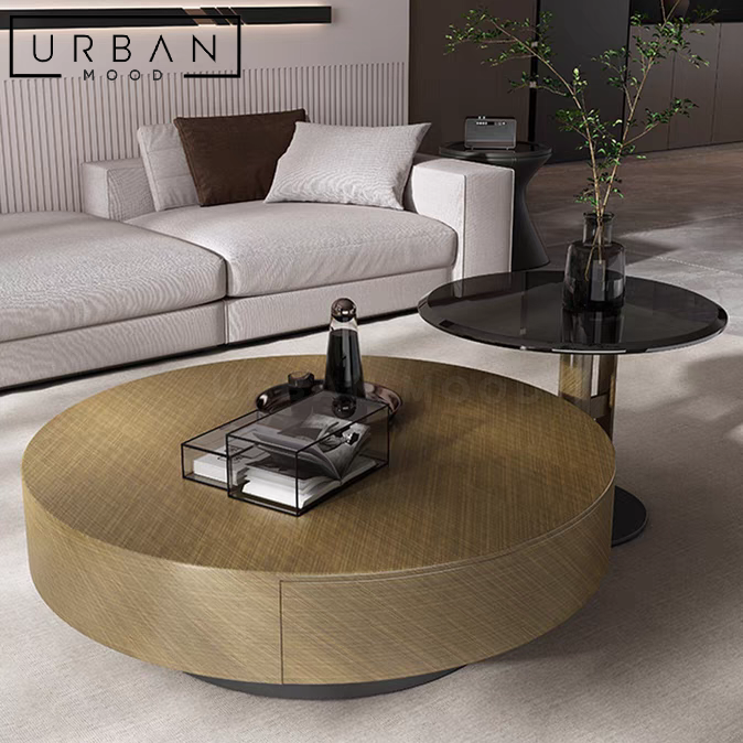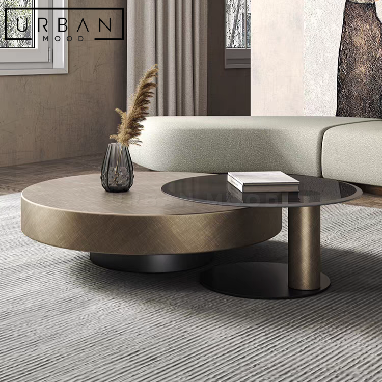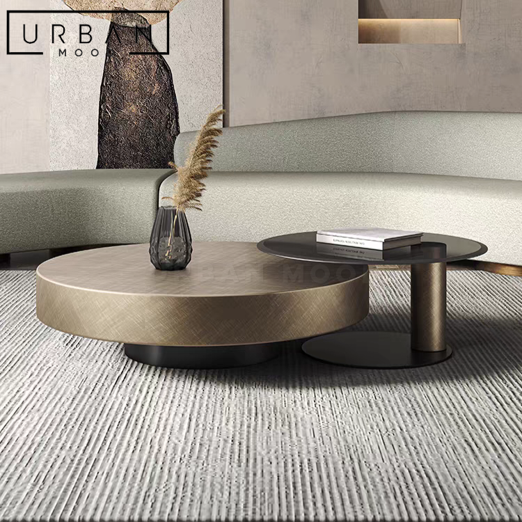 A striking centerpiece for any living room or office lounge, our SPHERIC nesting coffee table is crafted from metal with a brushed brass finish, and exudes a modern and luxurious appeal, reminiscent of a stylish hotel setting. The nesting feature offers versatility and space-saving convenience, allowing you to create different configurations to suit your needs. The accompanying side table, with its tempered glass top, adds an extra touch of sophistication. Embrace the sleek lines and contemporary design of this coffee table set, perfect for creating a chic and upscale ambiance in your modern or Victorian home.