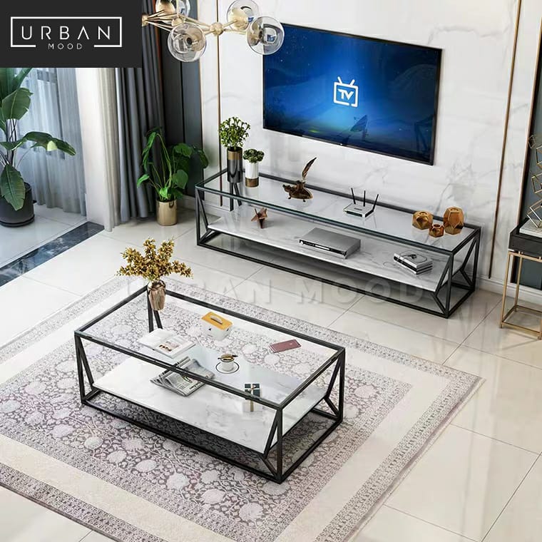 Tinted glass + marble + black frame