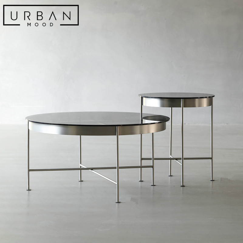 A futuristic design constructed from stainless steel in a matte brushed finish and 3C tempered glass top, the STEVIE nesting coffee tables exude luxury and style, drawing the eye with its contrasting black tinted and silver trims, making a statement for your living room or office lounge. Pull apart the center and side table for your guests,
