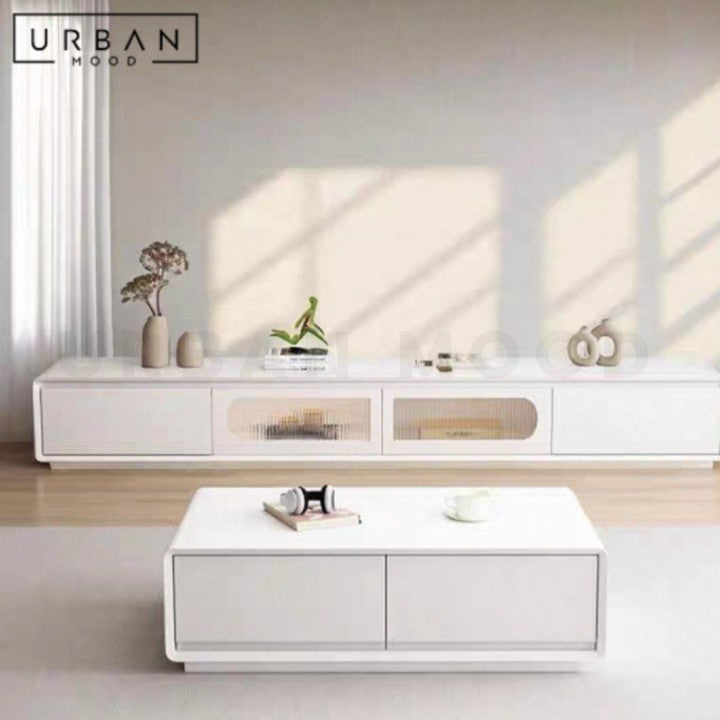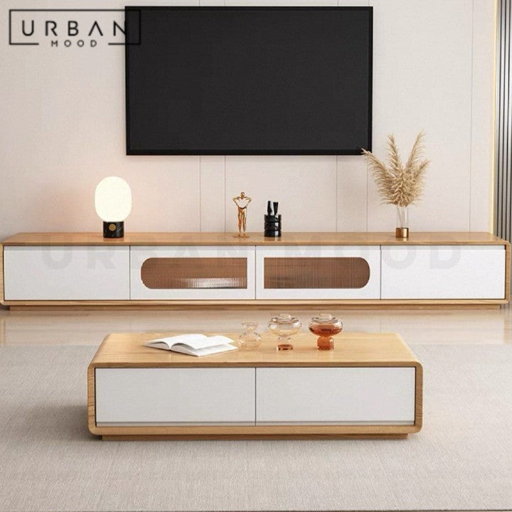 Crafted from high quality E0 solid ash wood multilayer board and pine wood for long-lasting strength, our SUZY TV cabinet and coffee table showcase a neat rectangular outline, complementing Scandi, Japandi, and contemporary spaces, offering versatile placement and spacious storage for media accessories in living rooms or lounges.