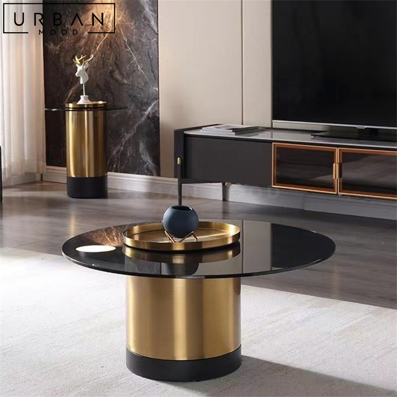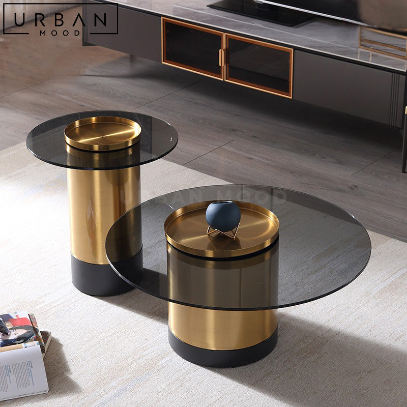 An anchor piece for any living room or office lounge, our TIBEL nesting coffee table is crafted from metal with a brushed brass finish, and exudes a modern and luxurious appeal, reminiscent of a stylish hotel setting. The nesting feature offers versatility and space-saving convenience, allowing you to create different configurations to suit your needs. The accompanying side table, with its tempered glass top, adds an extra touch of sophistication. Embrace the sleek lines and contemporary design of this coffee table set, perfect for creating a chic and upscale ambiance in your modern or Victorian home.