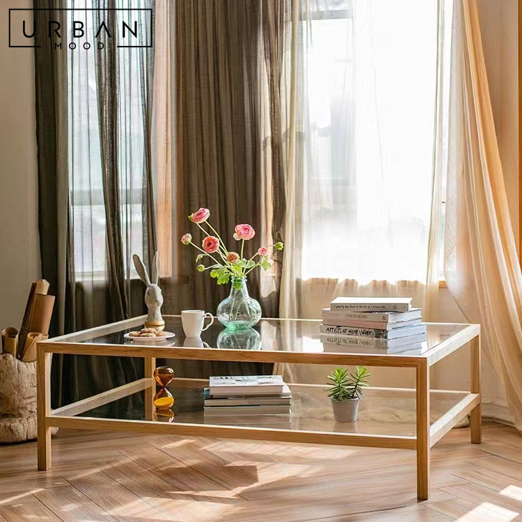 Inspired by Japandi style, our ZYRA coffee table showcases a sleek pine wood frame in a light oak stain, and two tiers of transparent glass. With its two spacious tiers, you have ample room to showcase decor, books, or magazines while keeping your essentials within easy reach. The clean-lined design adds a soothing vibe to any modern, Scandinavian, rustic, or cottage-inspired living room or office lounge.