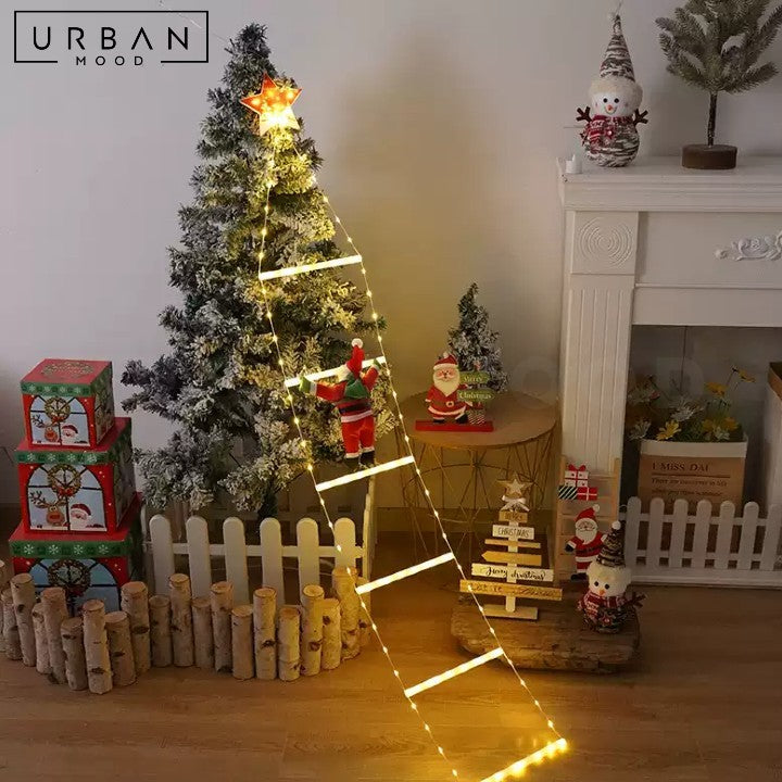 Add a playful touch to your Christmas tree with our adorable LED light tree topper, shaped like a ladder for Santa to climb. This charming decoration is sure to delight both kids and adults alike. Made with bright and energy-efficient LED lights, this tree topper is not only cute but also durable and long-lasting. Make your Christmas tree truly special with this fun and festive ladder tree topper!