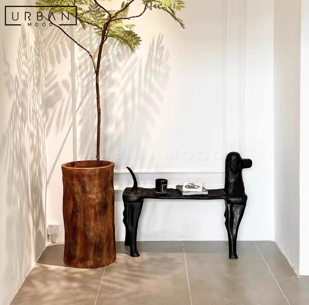 Our whimsical MISTER bench will surprise any first that walks through your door! Crafted from sturdy pine wood and adorned with a striking matte black finish, this bench takes the shape of a dog with an elongated body that doubles as a comfortable seat. Its unique design adds a touch of humor and eclectic charm to any space, making it a perfect addition to your entryway, living room, office, or any corner in need of a creative accent.