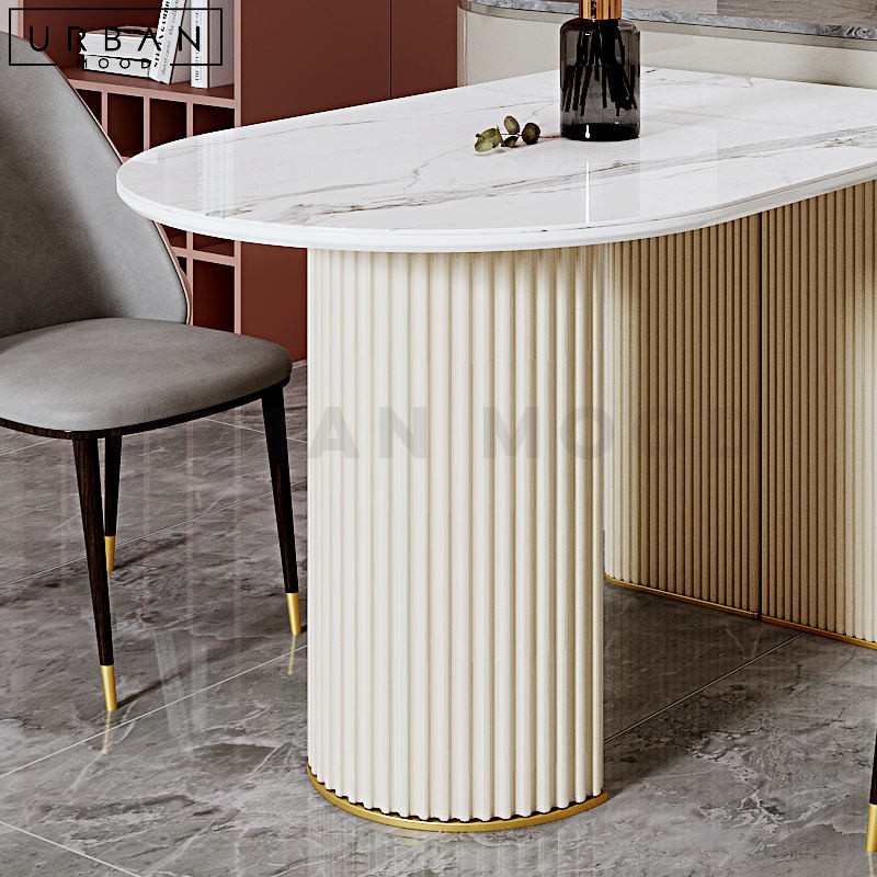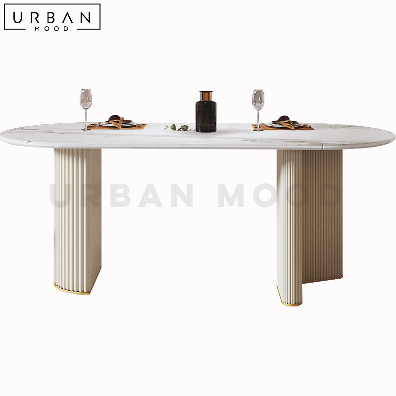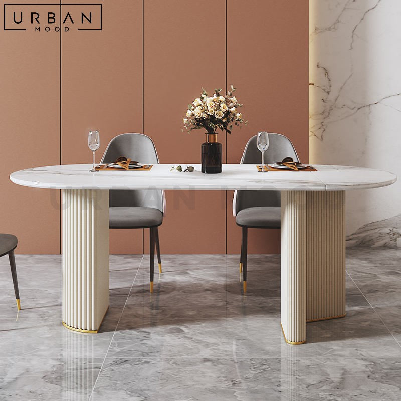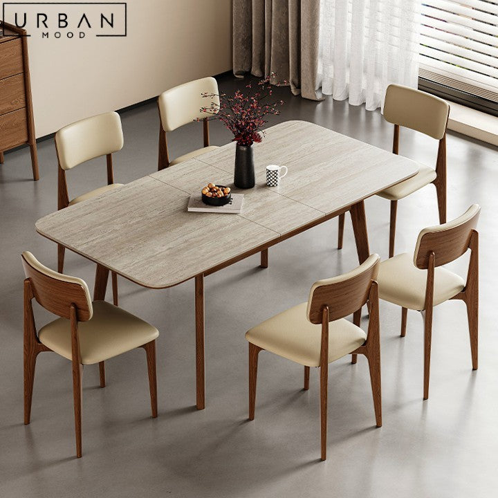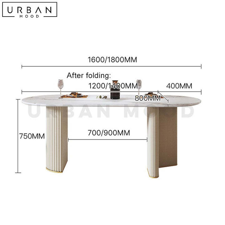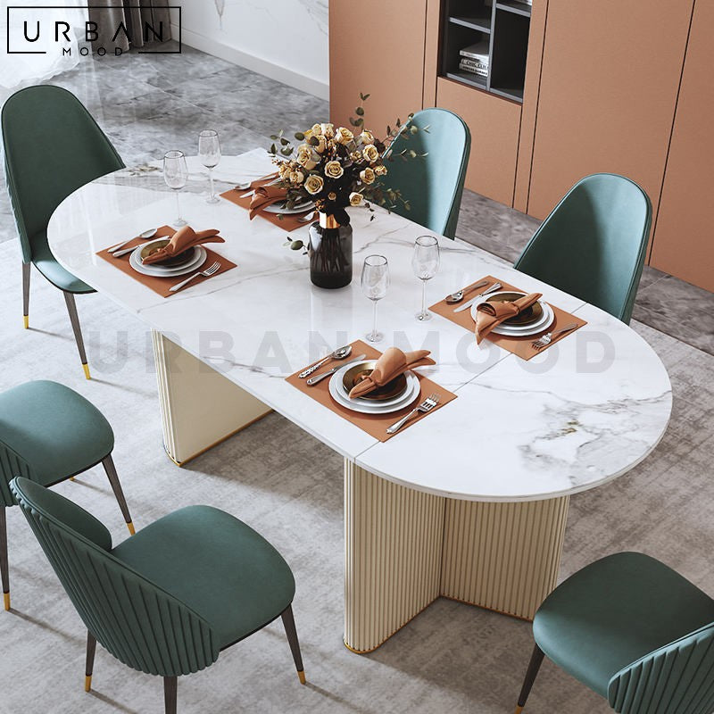 Add a touch of sophistication to your dining space with our HIGGINS sintered stone dining table, expertly crafted from high-quality slate stone. Featuring extendable table ends to cater to both cozy and large gatherings, this dining table combines modern design with natural elements, creating a unique and stylish centerpiece for your dining area. The sintered stone material offers durability and a sleek, smooth surface that is resistant to scratches and stains. Complete the Hygge look with our MAJORE dining chairs.