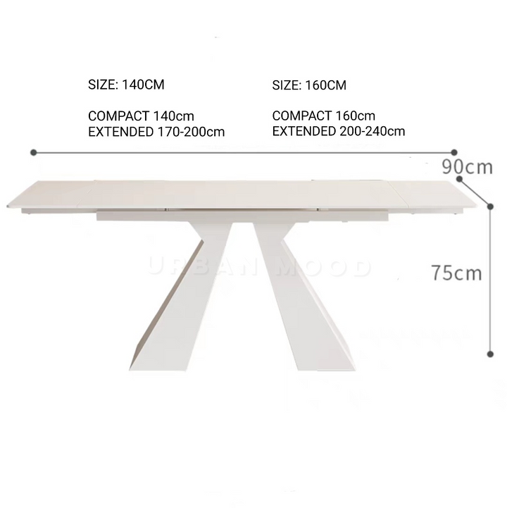 Engineered to provide outstanding durability and longevity, our CAVA table top is crafted from sintered stone, renowned for its strength, resistance to scratches, stains, and heat, ensuring that your table remains pristine even after years of use. Transform from a cozy family setting to a spacious entertainment space with the smooth extension mechanism. A single carbon steel leg adds a striking visual element. This contemporary dining table will be the centerpiece in any modern or minimalist dining space.