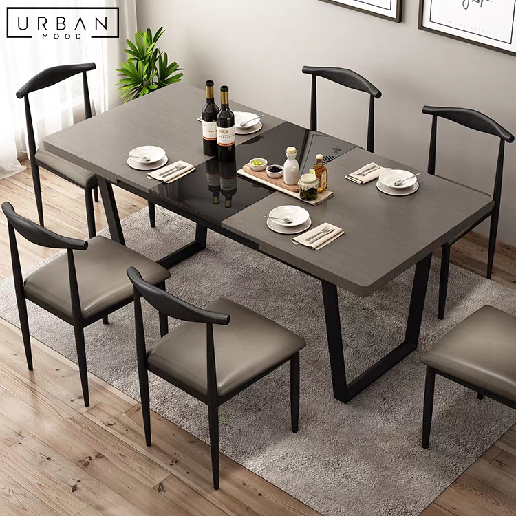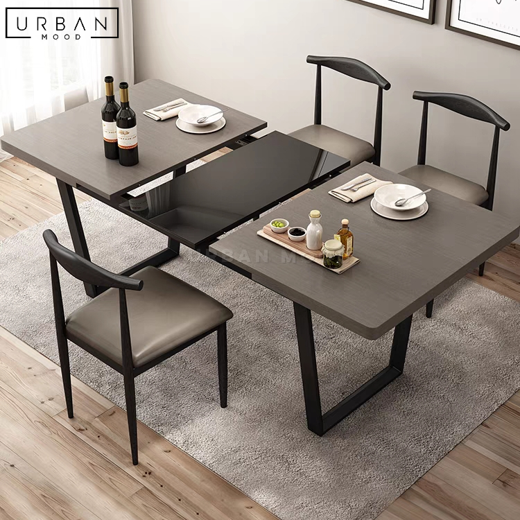 Crafted from high-quality fiberboard, our WANG dining table features a sleek design and clean lines that make it a versatile addition to any modern or classic dining room. This dining table is perfect for hosting dinner parties or family gatherings, with the option to extend the table to accommodate additional guests. Add matching classic bullhorn chairs to provides ample seating for your guests. Choose between monochrome and ash walnut to complement your modern or industrial interior theme.