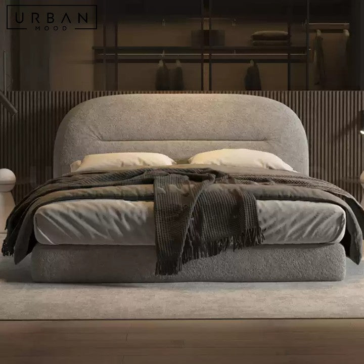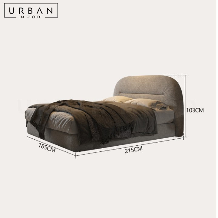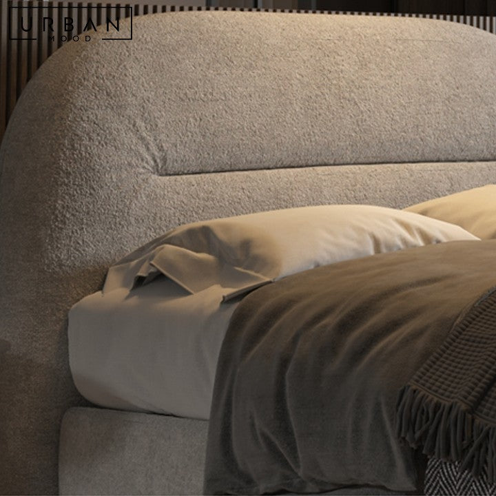 Anchor your bedroom in comfort with our PARIG bed frame, featuring a plush curved headboard and frame. Simple yet elegant, this modern bedframe complements classic, modern, and hotel-inspired decor. Built with a sturdy pine wood internal structure for durability, the plush fabric adds a touch of luxury and comfort. Perfect for both children and adults, this fabric bedframe combines understated elegance with modern charm.