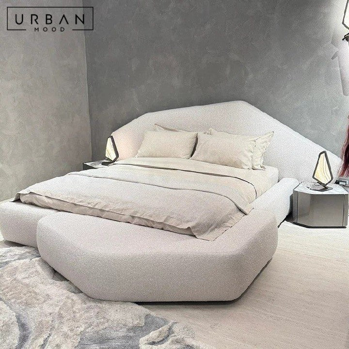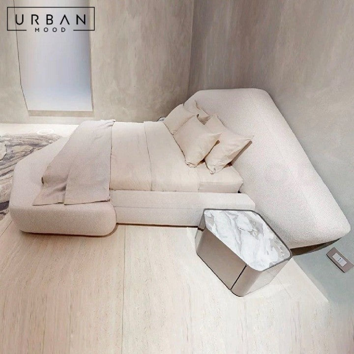 A unique bedframe design that instantly takes the limelight in any bedroom, our SIKA bed frame is uholstered in Germany cotton linen fabric (or luxurious Italian Nappa leather), offering a smooth and inviting surface. The oak wood structure ensures stability and longevity, while the down feather and high-density foam cushion provides superior comfort for restful nights.