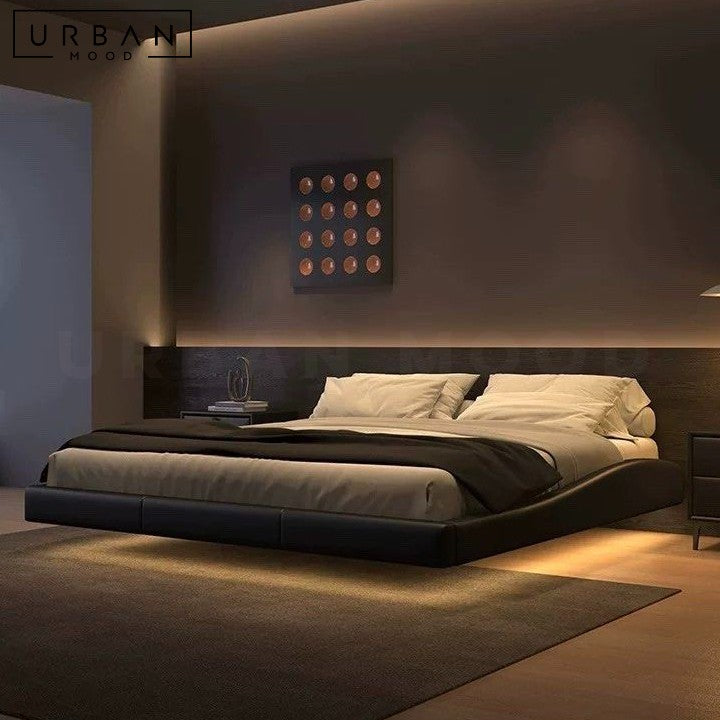 Introducing the KNAPP Modern Leather Floating Bedframe, a striking blend of luxury and contemporary design. Crafted with premium leather upholstery, high resilience foam cushions, and a solid pine wood structure, this bedframe effortlessly combines style and comfort.
