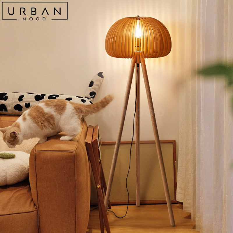 Illuminate your Japandi or vintage space with our REGO standing lamp. Featuring a sturdy pine wood stand and a mushroom-shaped lampshade, this floor lamp creates a warm and inviting ambiance whether in your living room, bedroom, or home office. Illuminating up to 25sqm, this lamp will cast a warm glow over your hygge or wabi sabi space.