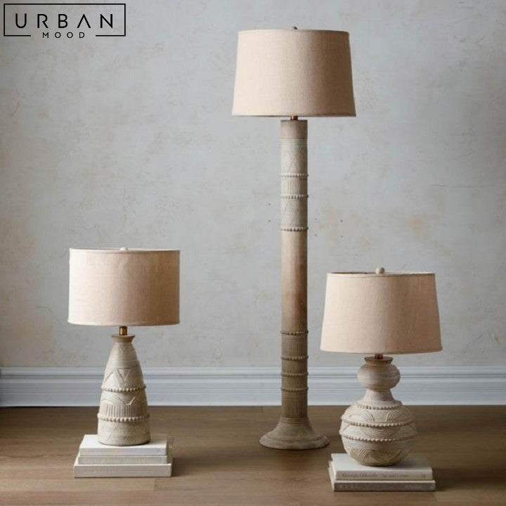 Add a charming touch to your living room, bedroom, or office lounge with our SALDANHA floor lamp, featuring a captivating lamp base with intricate carving. Crafted from high-quality wood and a fabric lampshade to diffuse the light, this floor lamp showcases the timeless beauty of the Japandi spirit. The neutral palette of the wood adds warmth, while the cloth shade complements the classic aesthetic.