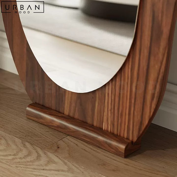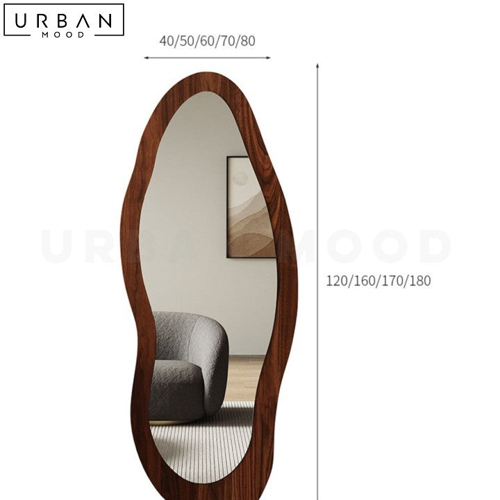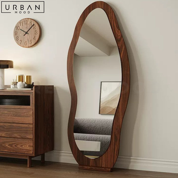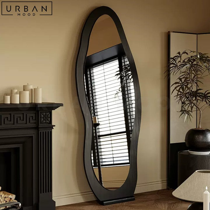 Revitalize your space with the ARACE Modern Irregular Full-Length Mirror, a stunning fusion of modern design and timeless French influence. Crafted from premium rubber wood, this mirror features an irregular shape that adds a touch of contemporary flair. The French-inspired style is evident in the exquisite details and overall elegance. Ideal for both functional use and decorative purposes, the ARACE mirror becomes a captivating focal point in any room.