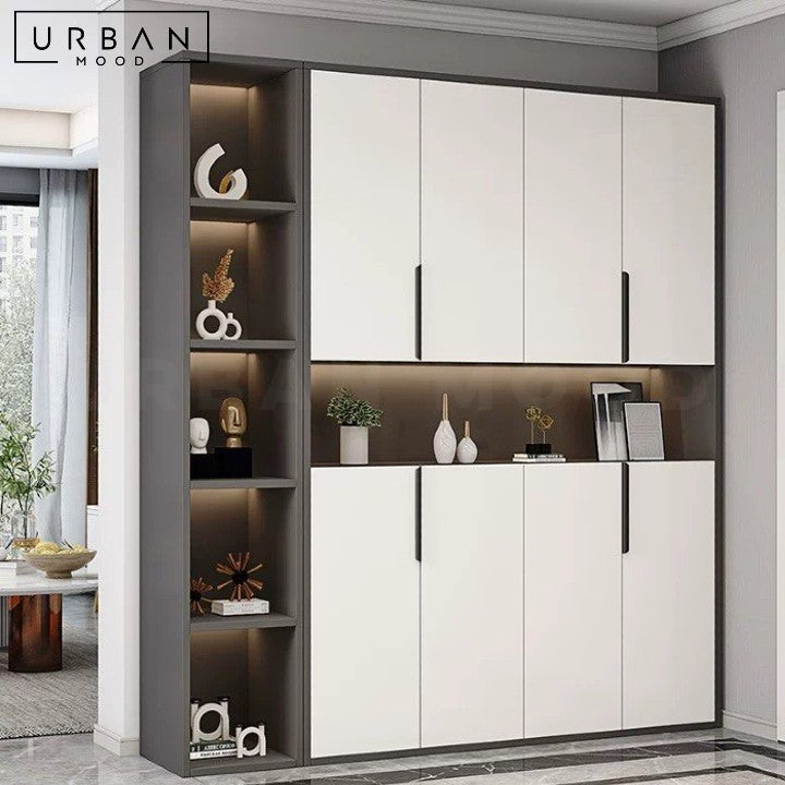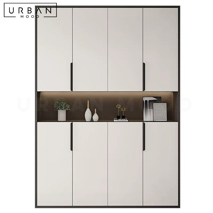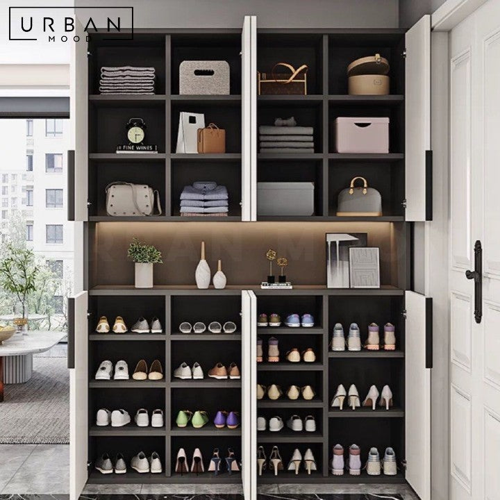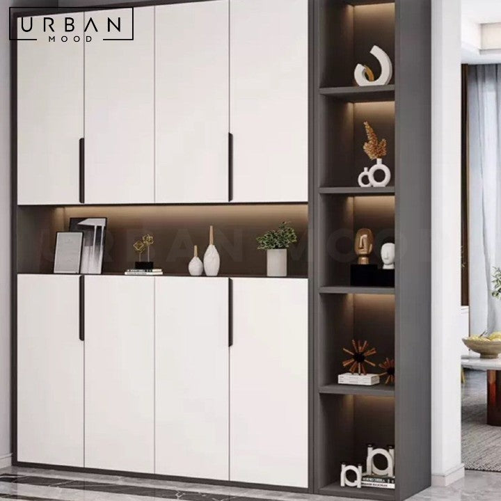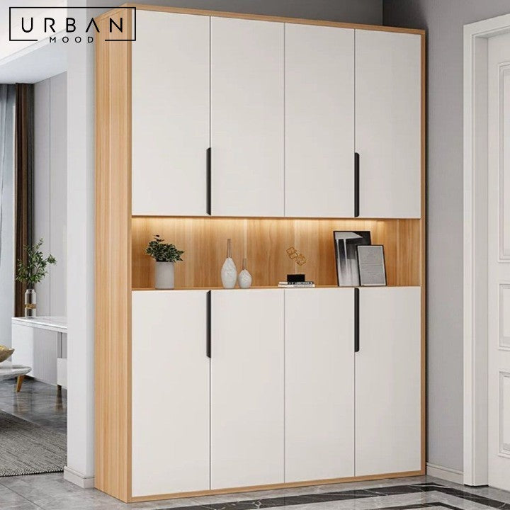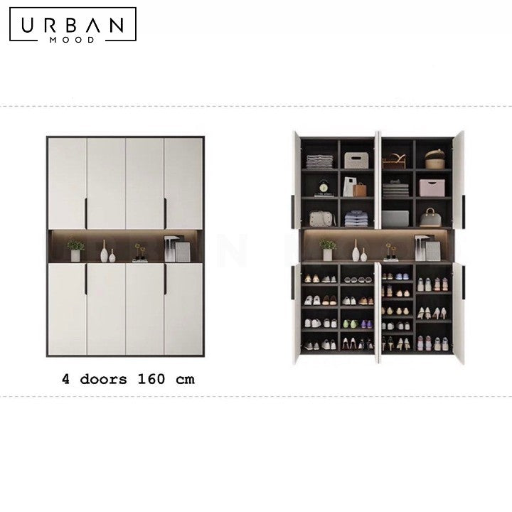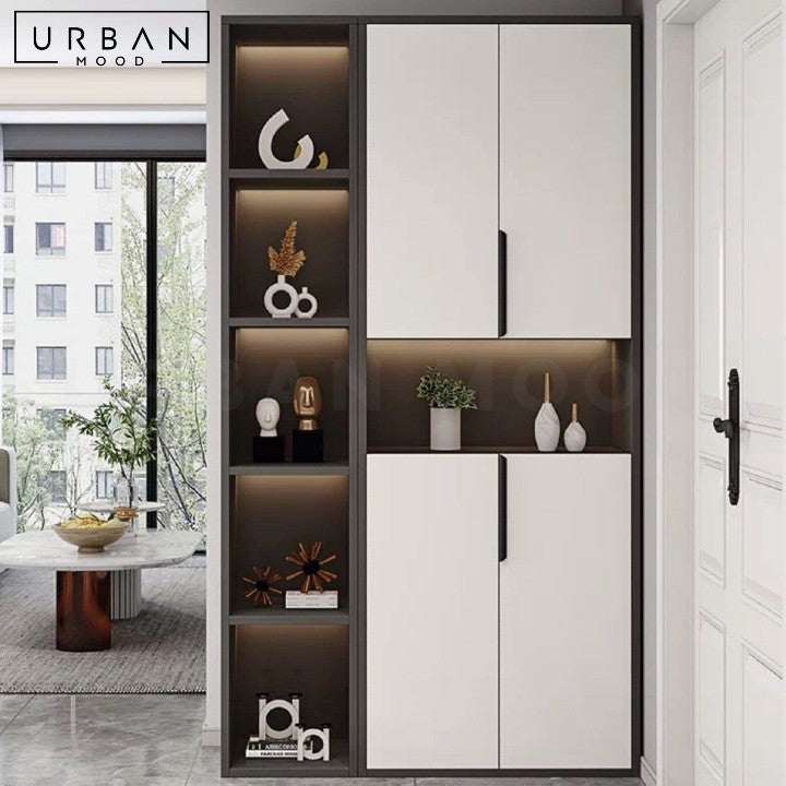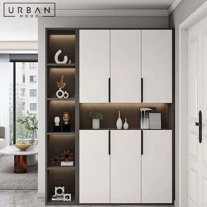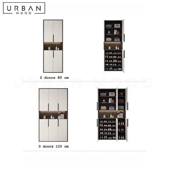 Crafted to resemble a custom carpentry piece, our BERAN full height cabinet features spacious top and bottom cabinets, providing ample storage for your shoe collection. A convenient niche with LED lighting adds a touch of sophistication, perfect for displaying decorative items or accessories. Built with exceptional quality and attention to detail, this shoe cabinet is a beautiful addition to any minimalist, Scandinavian, or Hygge home.