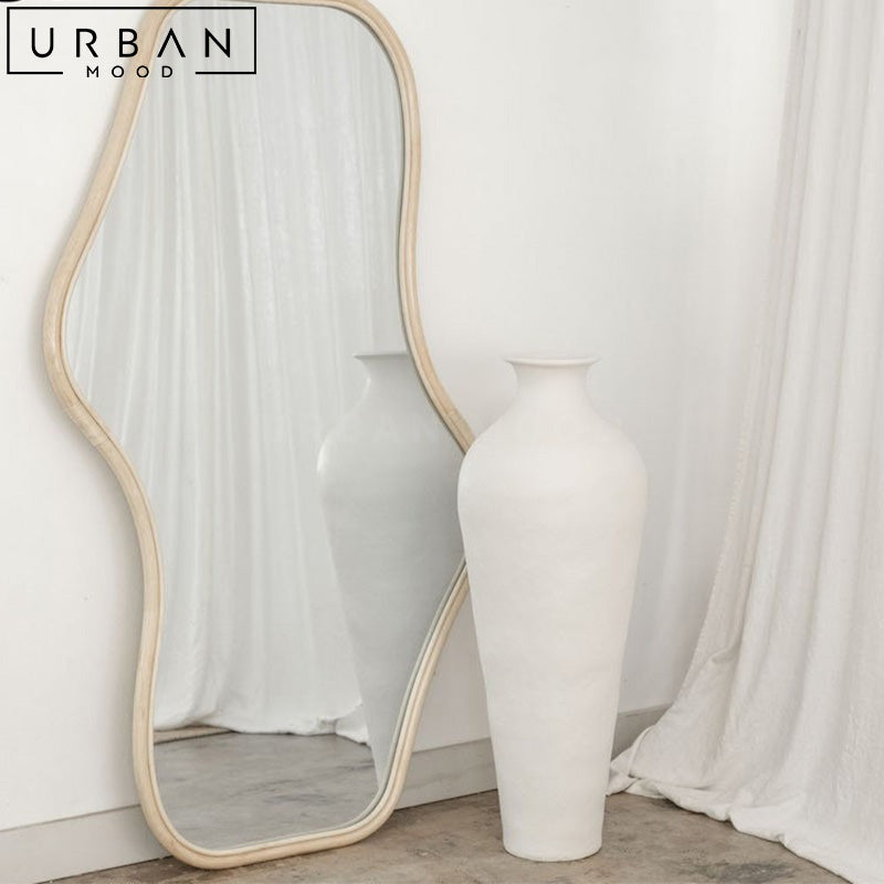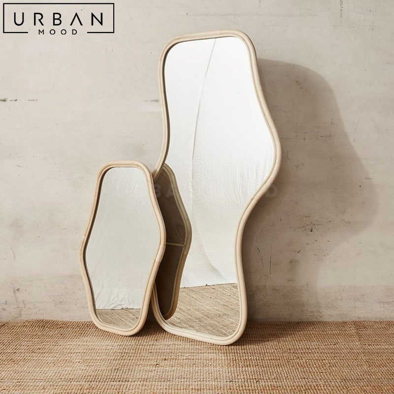 This adorable full-length mirror features an irregular outline that will provide your guests with a great view of your room. Lean the DEUS mirror against the wall in your hallway to add a playful accent or hang it in your walk-in closet with the bracket provided for a more secure placement. Constructed from silver mirror and a luscious velvet frame, this shatter-proof glass provides both safety and durability. A must-have for modern, minimalist, or eclectic home style lovers.