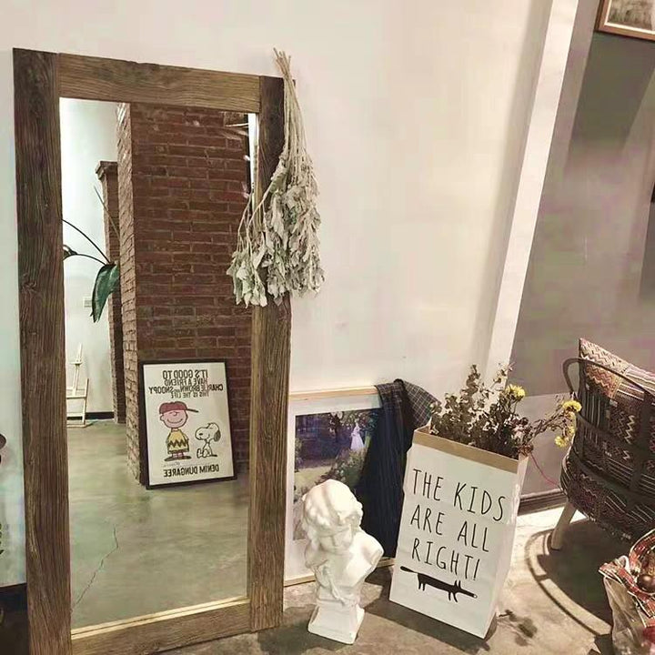 Handcrafted from solid old elm wood, the Dree standing mirror adds a touch of old world charm to any modern or rustic settings with its natural and organic wood grains and rich tones of wood. Place it along the foyer for guests to take a last glance at their attire before leaving, or in your walk in closet or wardrobe for your morning get up routine.