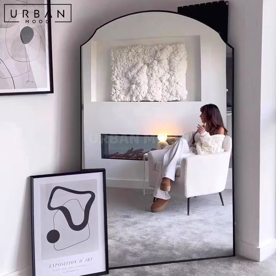 Transform your hallway or living room into a gallery of sophistication with our DORA standing mirror. Its arched border adds a Victorian accent to any room it graces. This versatile mirror doubles as an accent piece, enhancing and enlarging your space. Place it in your bedroom for a glamorous dressing experience, or adorn your living room to amplify its grandeur. Wherever you choose to display it, this mirror will reflect your impeccable taste.