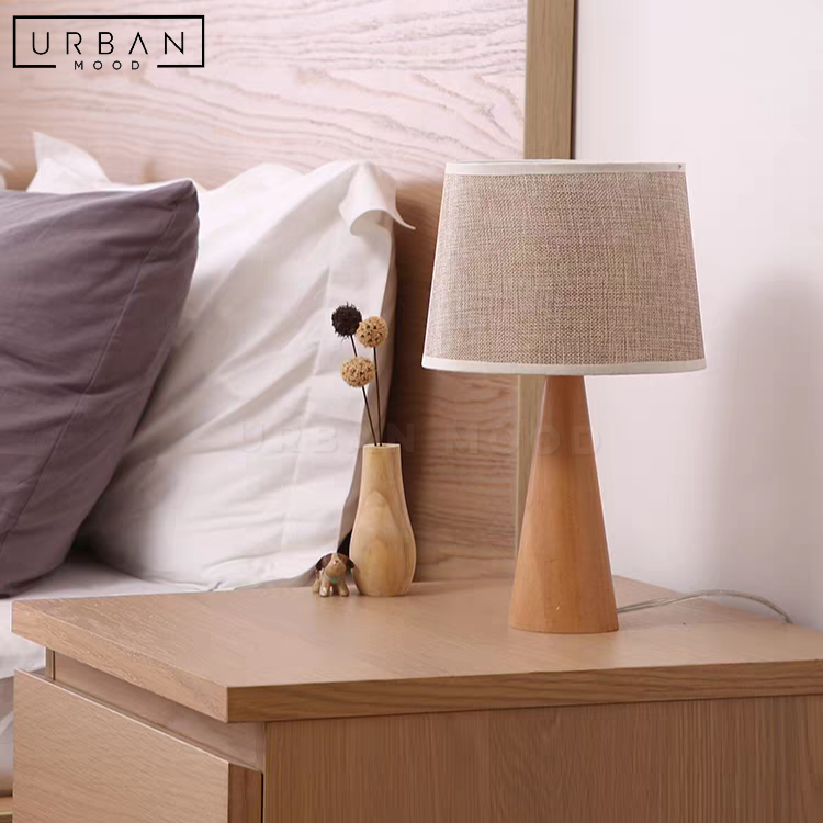 Illuminate your living room, bedroom or office desk with our enchanting ALTES table lamp, featuring a cream shade lampshade and a distinctive wood base in a warm oak finish. This Scandinavian lamp will set the ambience for your living room, bedroom, or lounge room.