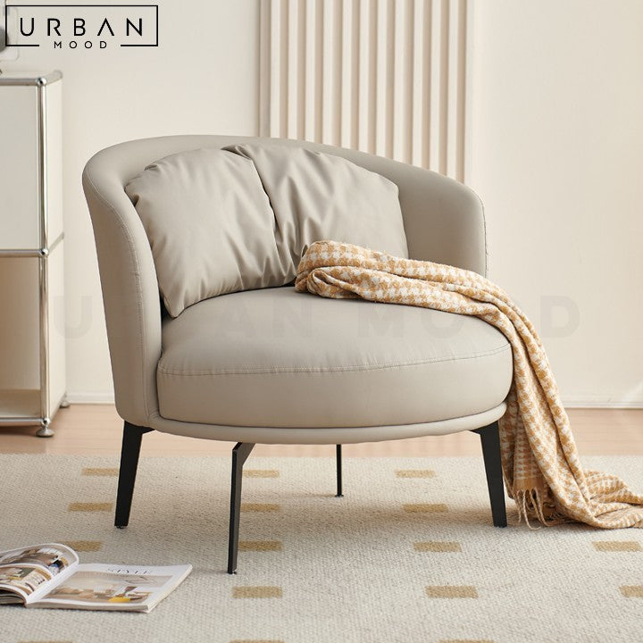 Upgrade your space with our TOFAN leisure chair. Reflecting contemporary style, this reading chair is crafted with a durable pine wood structure, and upholstered in luxurious faux leather, offering both sturdiness and comfort. Its rounded outline and neutral tones make it versatile, blending effortlessly into any modern or industrial decor. Whether placed in the living room, bedroom or office, this armless chair adds a touch of modern elegance to your home.