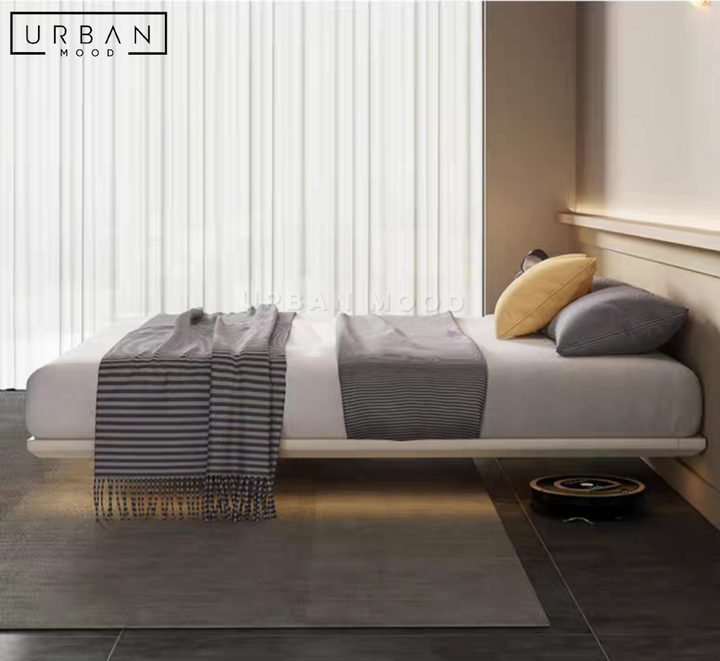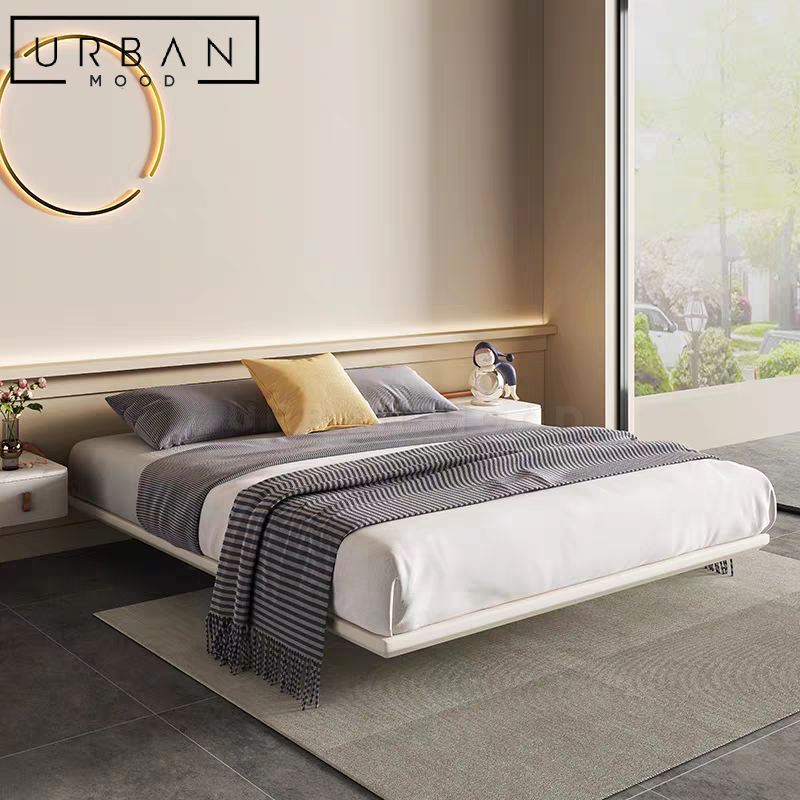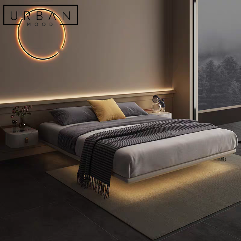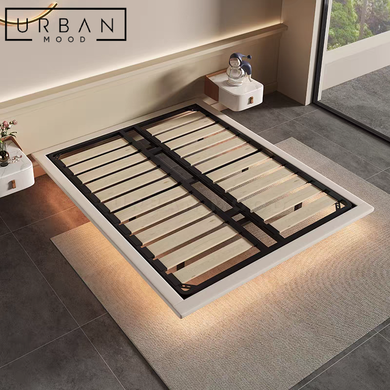 Elevate your bedroom in style with our AIRE bedframe, featuring a raised bed base held in place by reinforced metal and a solid pine wood structure, giving the impression of a floating bed. Fully upholstered in the highest quality Nappa leather and infilled with cotton, the bedframe makes a strong statement with an in-built smart light sensor, lighting your path in the dark when you are in the vicinity and adding a touch of pure luxury to your inner sanctuary. A unique centerpiece for modern, contemporary, or hotel-inspired bedrooms.