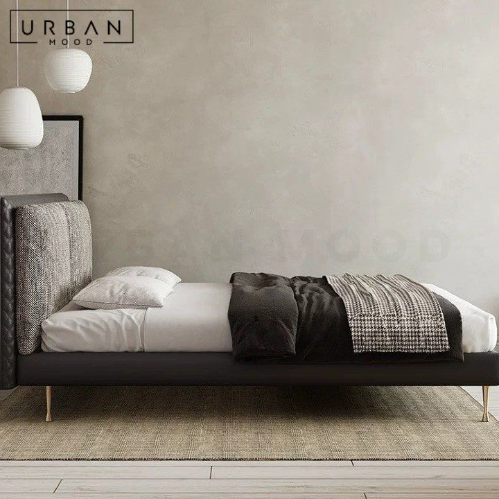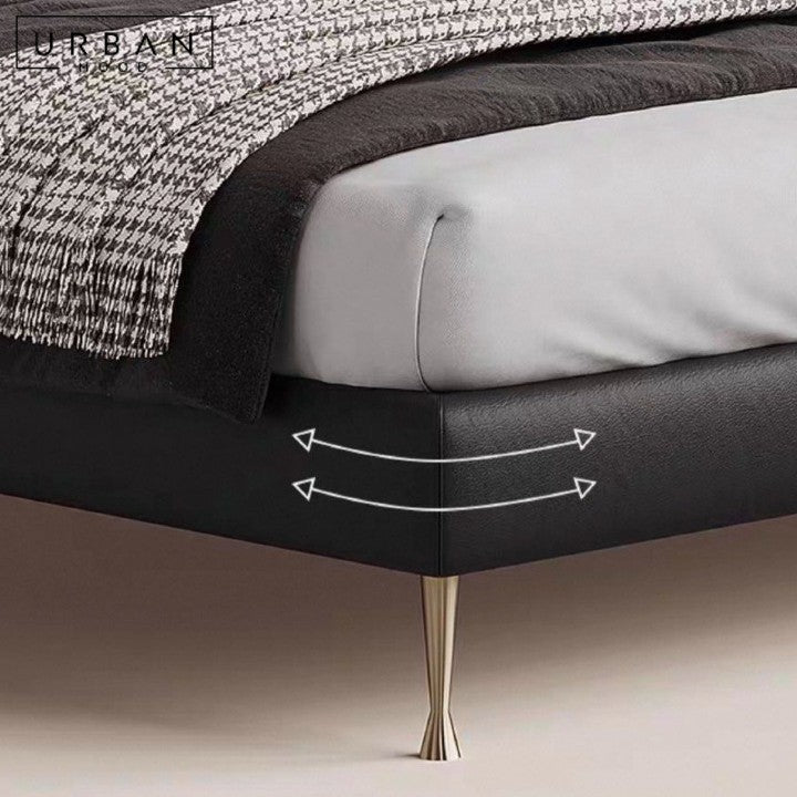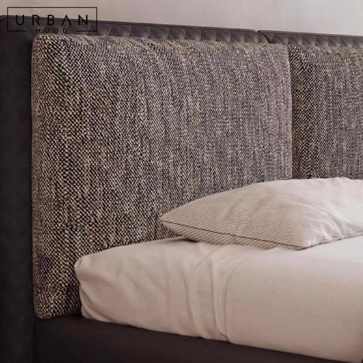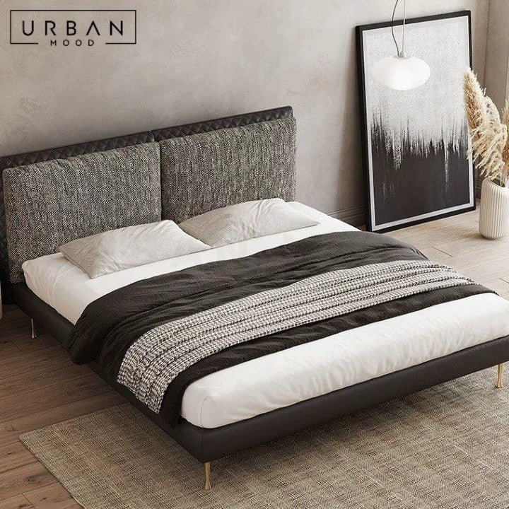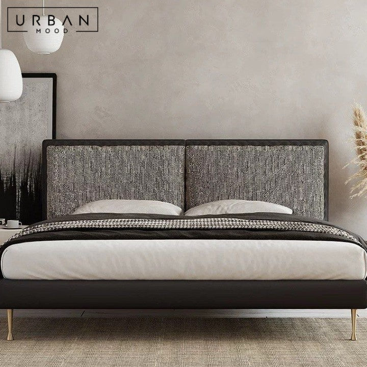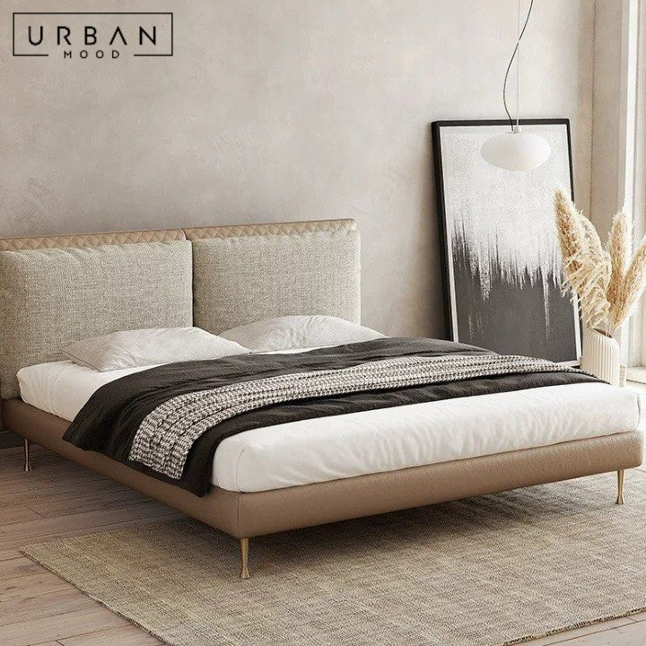 Lending designer vibes is our SUE bed frame, offering a solid construction consisting of a genuine leather frame, cotton linen fabric cushions, and a high-resilience foam cushion. Its oak wood structure makes it an excellent choice for supported sleep. The high-quality materials and workmanship ensure an upmarket appearance while maintaining everyday practicality.