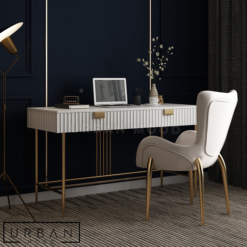 Add a touch of classic Edwardian style to your dining setup with our GLOWER dining chair. Constructed from high quality faux leather and iron tapered legs, this magazine-worthy design features intricate tufted detailing on the backrest, adding refined beauty to any modern or Victorian dining rooms. Its tall and curved backrest provides rest for your guests' neck and back. Choose between three striking colours to complement your dining room or office.