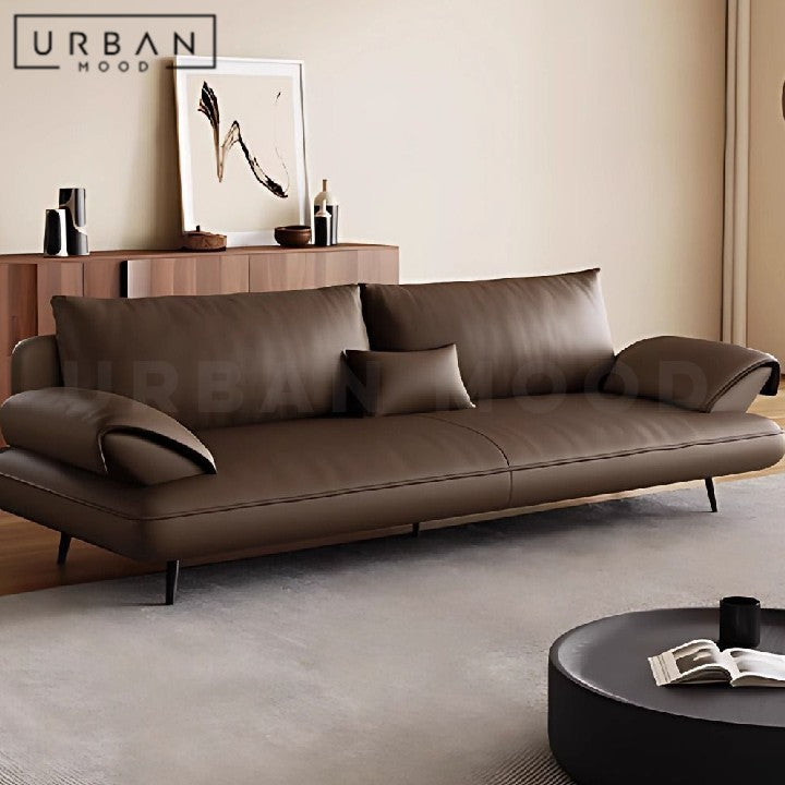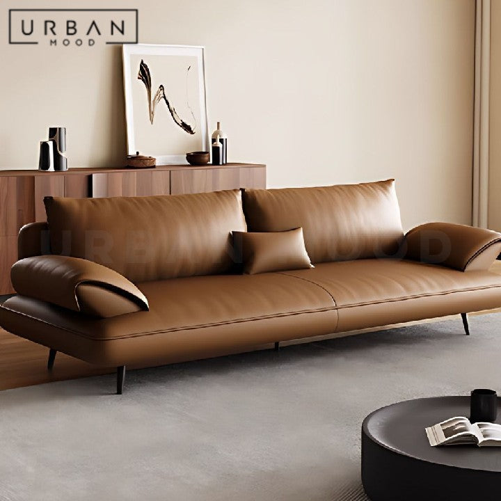 Built for comfort and durability, our DIAZ leather couch features a radical design and scratch-resistant leather upholstery. High resilience foam cushions provide lasting support, while the pine wood internal frame ensures dependable structure. This timeless design integrates well with industrial, classic, and modern interiors.