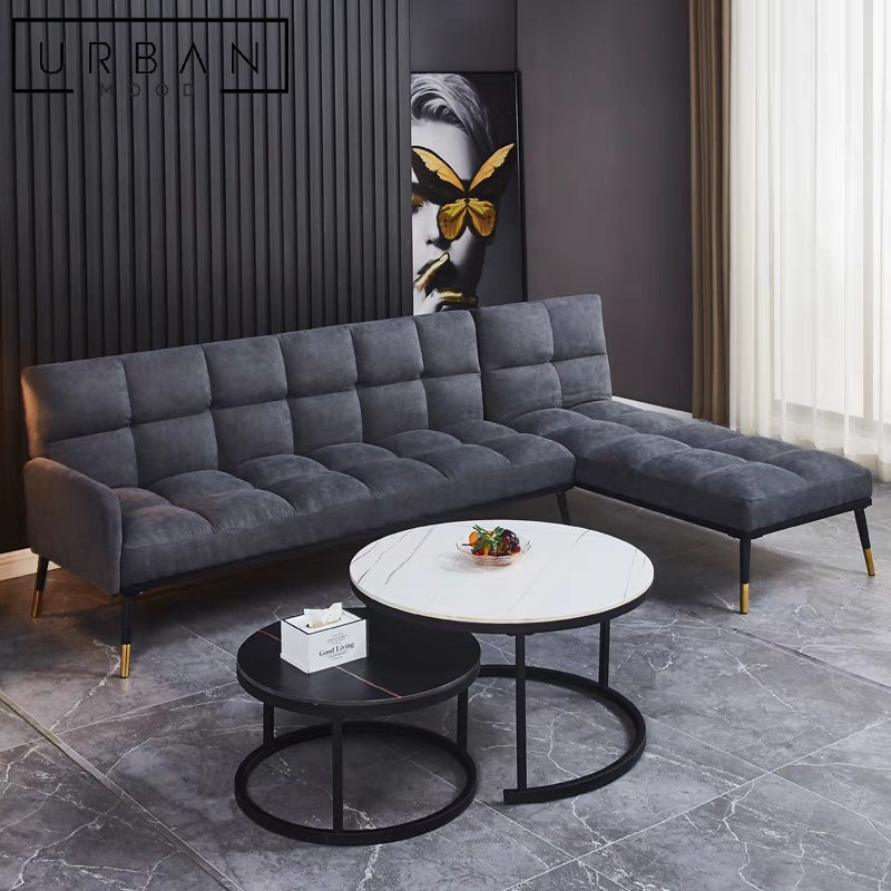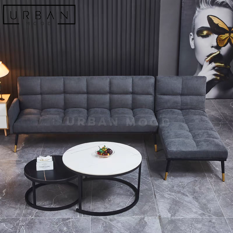 Featuring a delicate tufted design and sleek metal legs tapered with gold caps, our FITCH sofa boasts a durable metal internal structure and full leathaire upholstery. Unfold the sofa into a bed for guests, and add a chaise lounger for family and friends to unwind after a long day at work. Available in many colours, this sofa bed design will suit an array of interior themes, from modern to vintage.