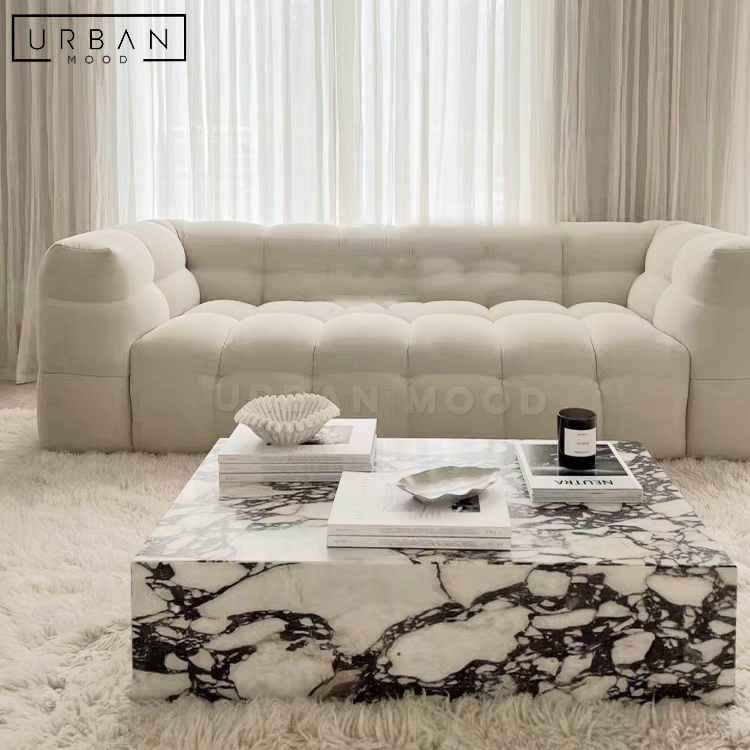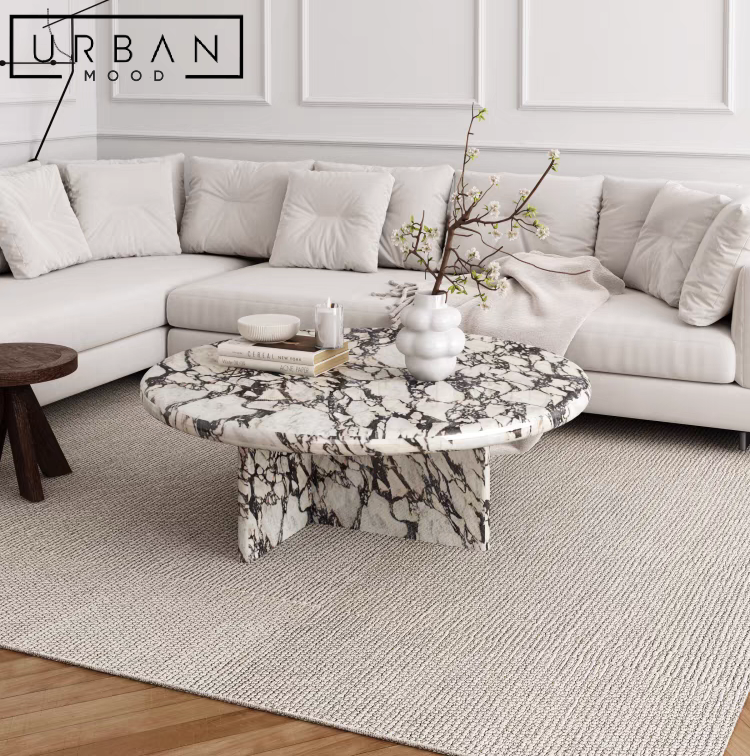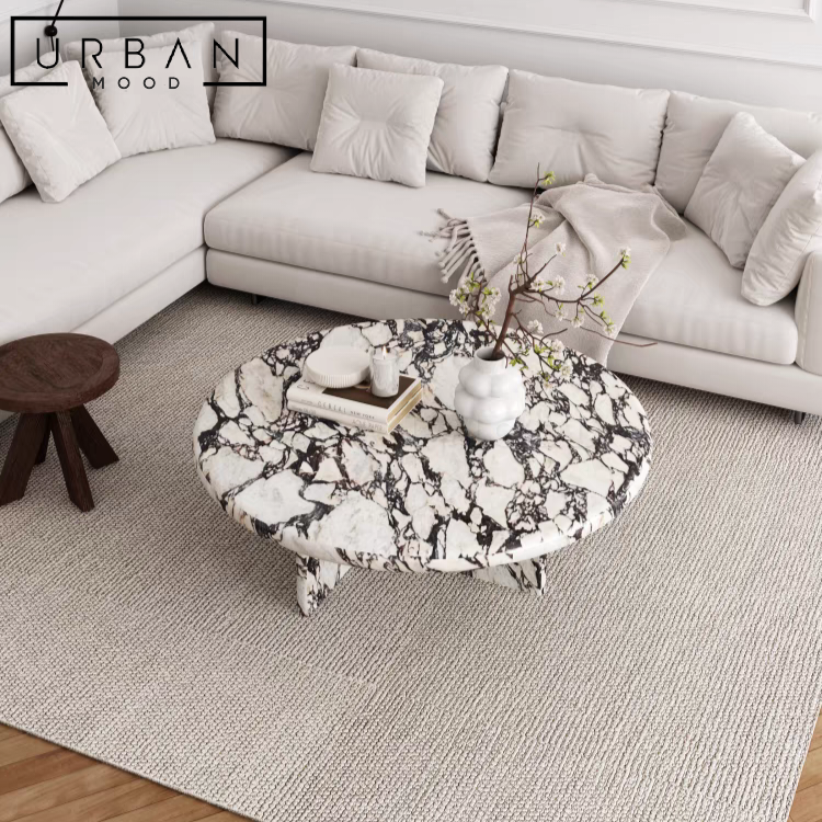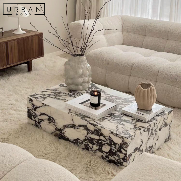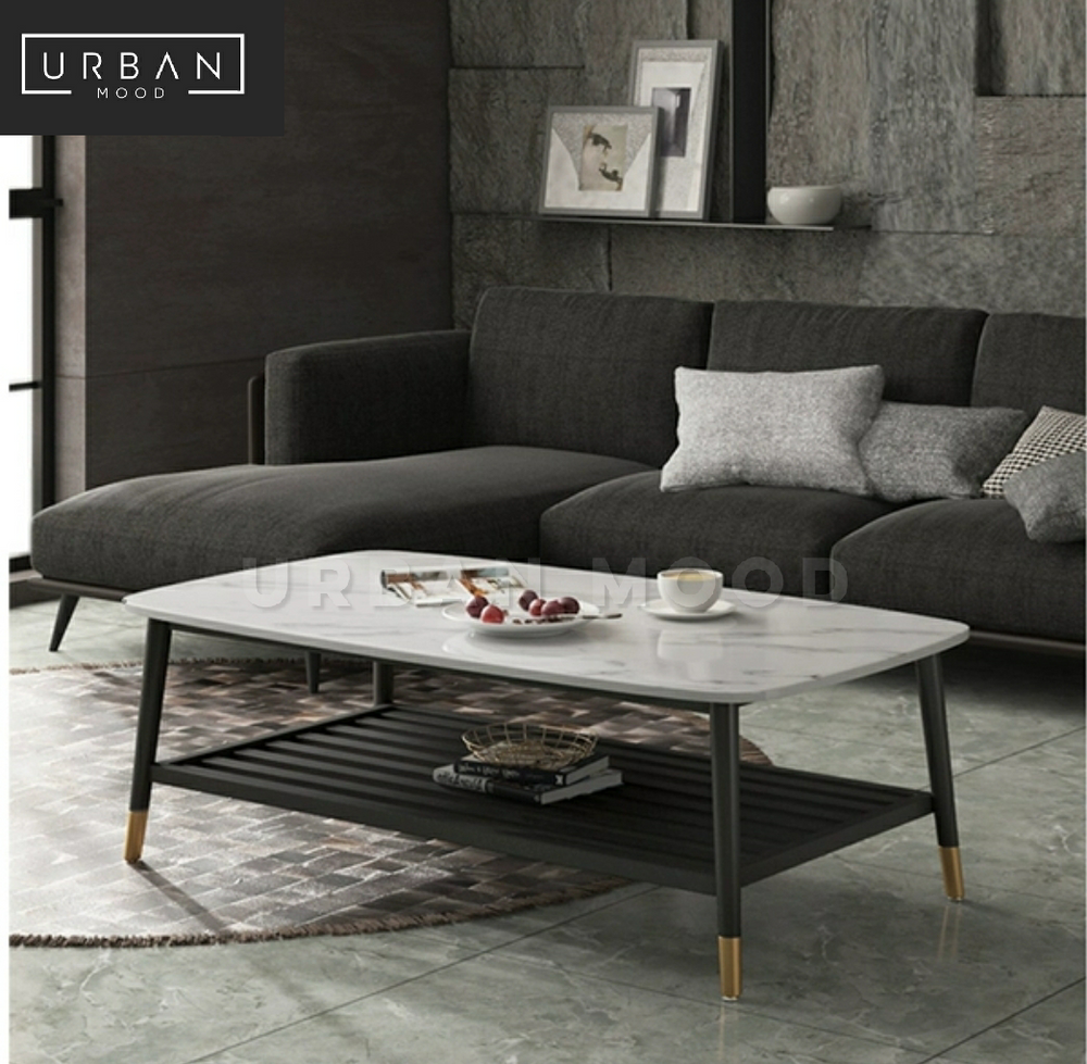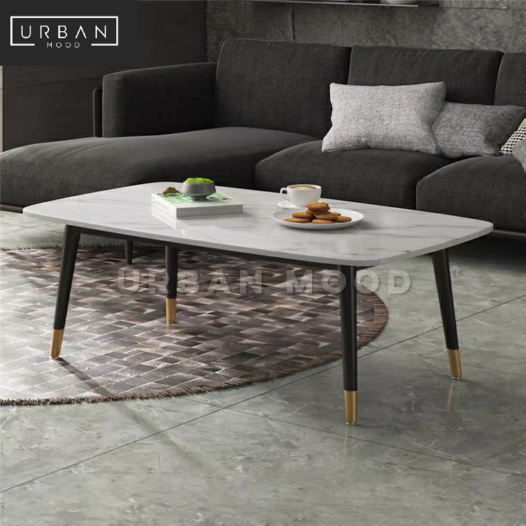 A minimal take on marble and steel, this contemporary coffee table gives your room an airy, approachable style.