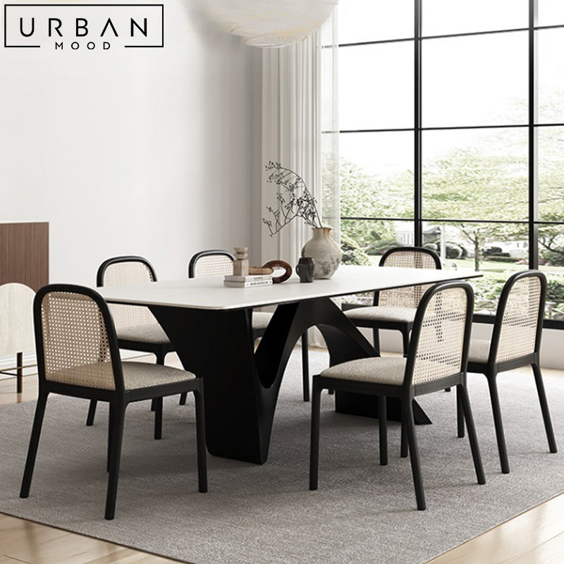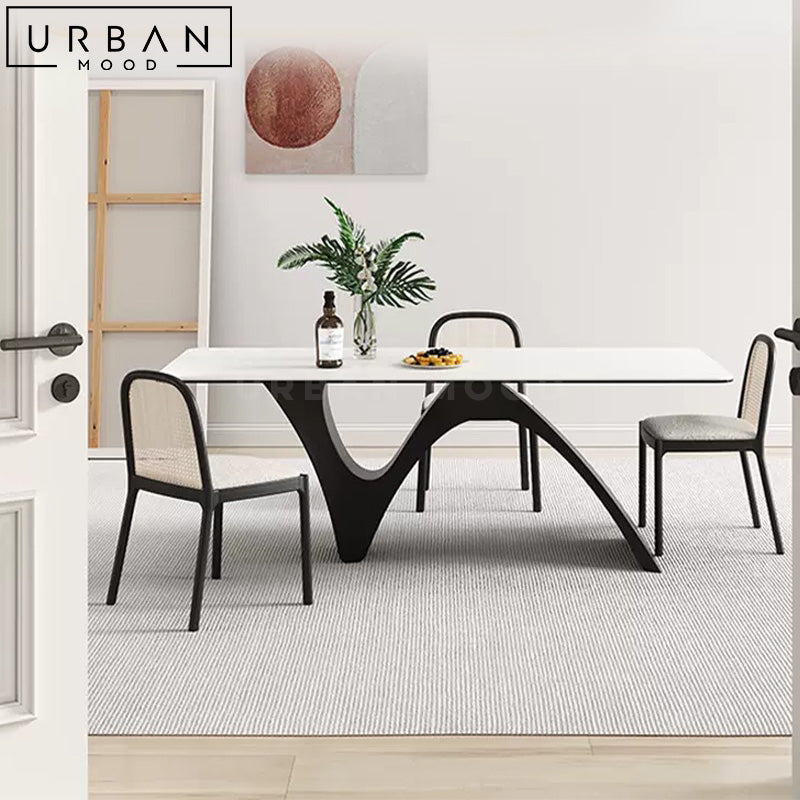 A stunning centerpiece for your dining area, our AMAN table is crafted with high-performance sintered stone, balanced upon a distinctive base that exudes elegance and sophistication. Its modern design and clean lines make it a versatile choice for any contemporary, classic, or eclectic interior.