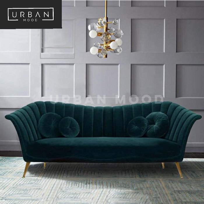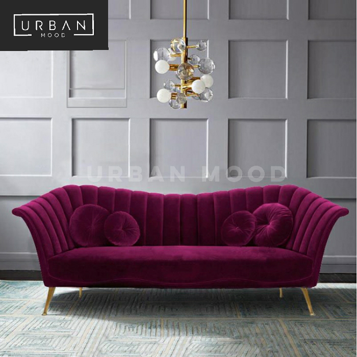 A work of art that does not compromise on comfort and practicality, the Avi sofa collection adds a Victorian accent with its winged backrest and ribbed details. Built with a wooden interior and high density foam, the sofa is wrapped in soft velvet. Curved stainless steel legs in gold are the cherry on top of this cake. Complement your seating ensemble with our wide range of accent mirrors for a hollywood luxe style.