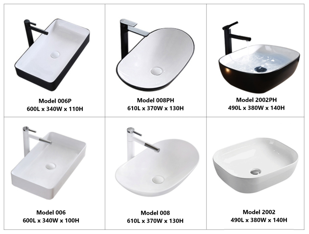 Customize your bathroom with your favourite modern interior colours, including black, white, gold and marble surface tops.
