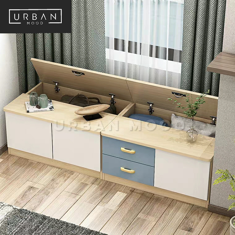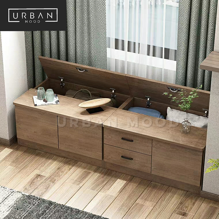 Turn recessed walls and purpose your window aisle into a storage space and lounge area with our fully customizable Dane windowsill ottoman storage bench. Made from high quality manufactured wood with a choice of veneer finishes, the cabinets will fulfill your shelving and storage needs and provide extra sitting room for guests and family.
